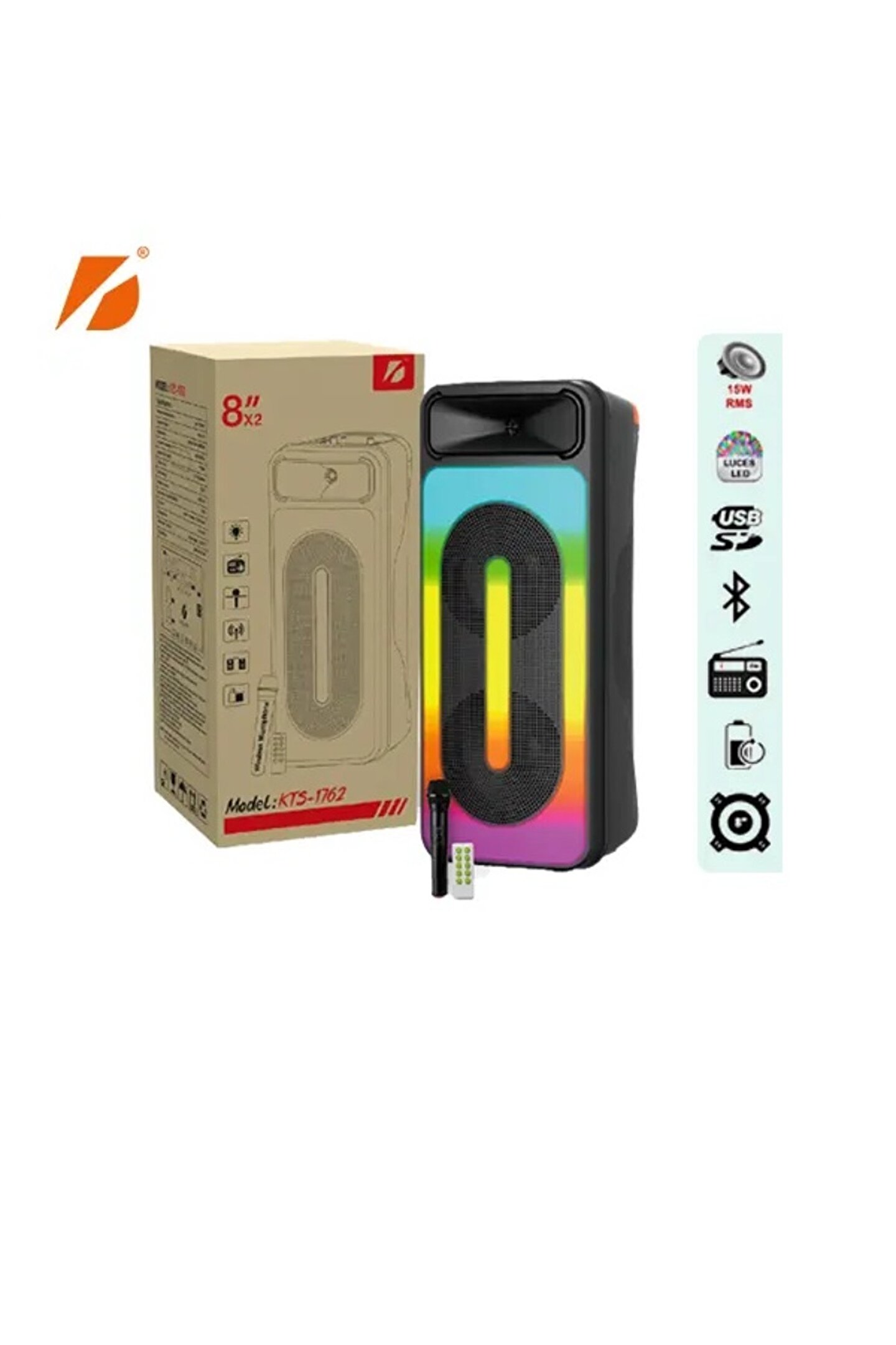 Ürün adıKts; 1762 Çift 8 İnç Şarj Edilebilir Kablosuz Taşınabilir Parti Bt Hoparlör, Rgb Işıklı Kablosuz Mikrofon Fm Radyo Tws Usb Tf kart Mp3 Müzik Çalar ses hoparlörü gts kts Bocina MalzemePP, MetalİşlevBt, Aux, Usb, Tf kart, Tws, Fm radyo, Mikrofon Jakı, Bas, Tiz; RenkSiyahHoparlör Özellikleri8 inç x 15W x 2 adet + 15W TWEETERPil kapasitesi2400mAh Şarj Edilebilir Li; pilÜrün Birim boyutu26,6x26,1x65 cmÜcretsiz aksesuarlarUSB Şarj kablosu x 1 adet, Kablosuz Mikrofon x 1 adet, Uzaktan Kumanda x 1 adet;
