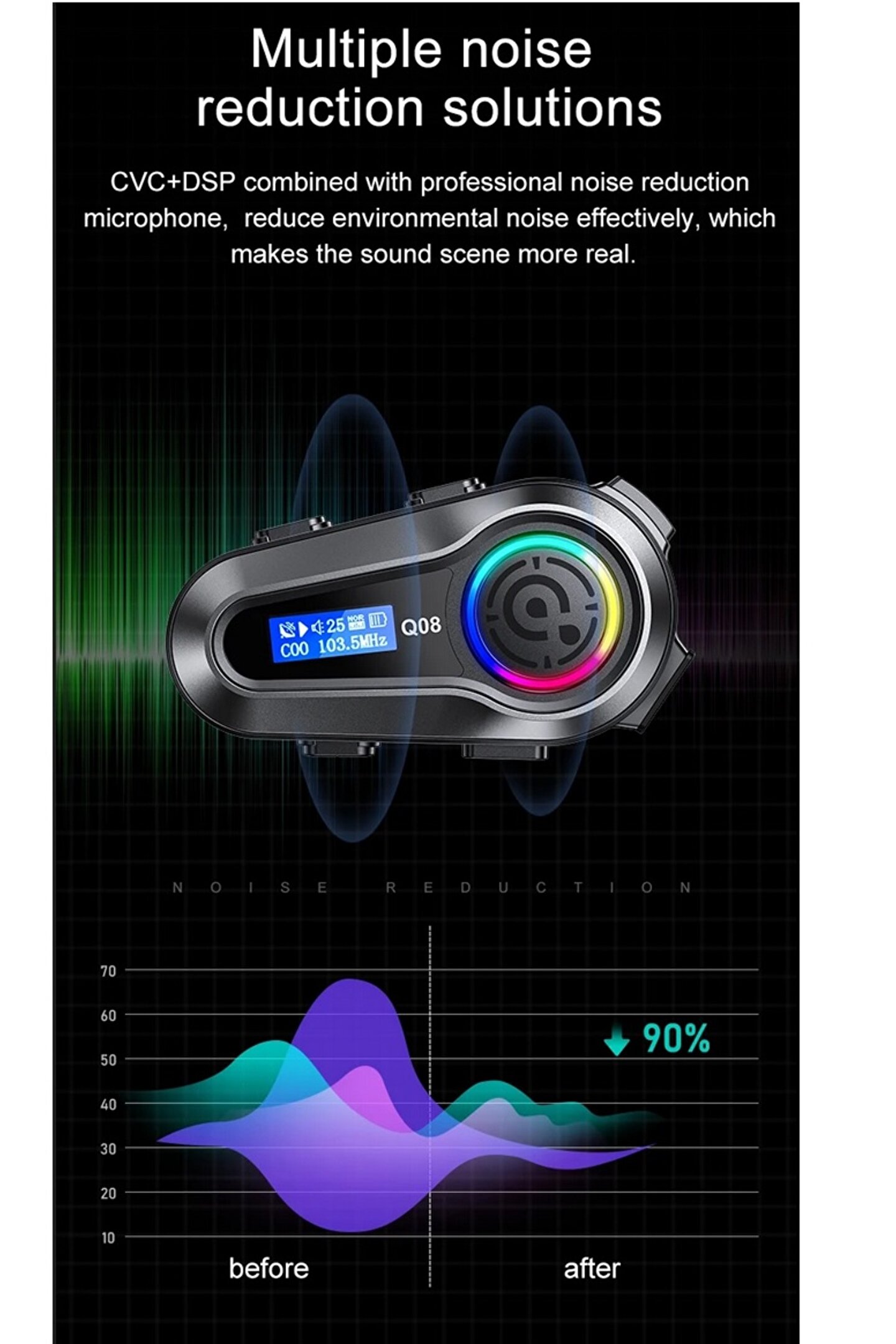 Genel Bakış • Bluetooth LCD ekran: Kask kulaklık, pil seviyesini ve diğer önemli bilgileri gösteren bir Bluetooth LCD ekran ile birlikte gelir. ; • Yüksek çözünürlüklü ses efekti: Kask kulaklık, sürüş sırasında net ve net ses kalitesi sağlayan yüksek çözünürlüklü ses efektleri sağlar. ; • IPX6 su geçirmez: Kask kulaklık, tüm hava koşullarında kullanıma uygun hale getiren IPX6 su geçirmezdir. ; • Stereo FM radyo: Kask kulaklığı, sürüş sırasında en sevdiğiniz melodileri dinlemenizi sağlayan bir stereo FM radyo özelliğine sahiptir. ; Clear LCD ekran, cihazın görüntülenmesini ve kullanılmasını kolaylaştırır Stereo FM radyo, birçok istasyon ile istikrarlı sinyal IPX6 toz geçirmez ve sıçramaya dayanıklı Yeni yükseltme 5.3 çip, daha hızlı tepki, daha kararlı Yüksek sadakat sesi Çoklu gürültü azaltma çözümleri Aynı anda iki mobilephonesat bağlayın Not: Bu ürünün interkom işlevi yoktur. ; Diğer markalar veya modeller ile eşleştirilemez.;