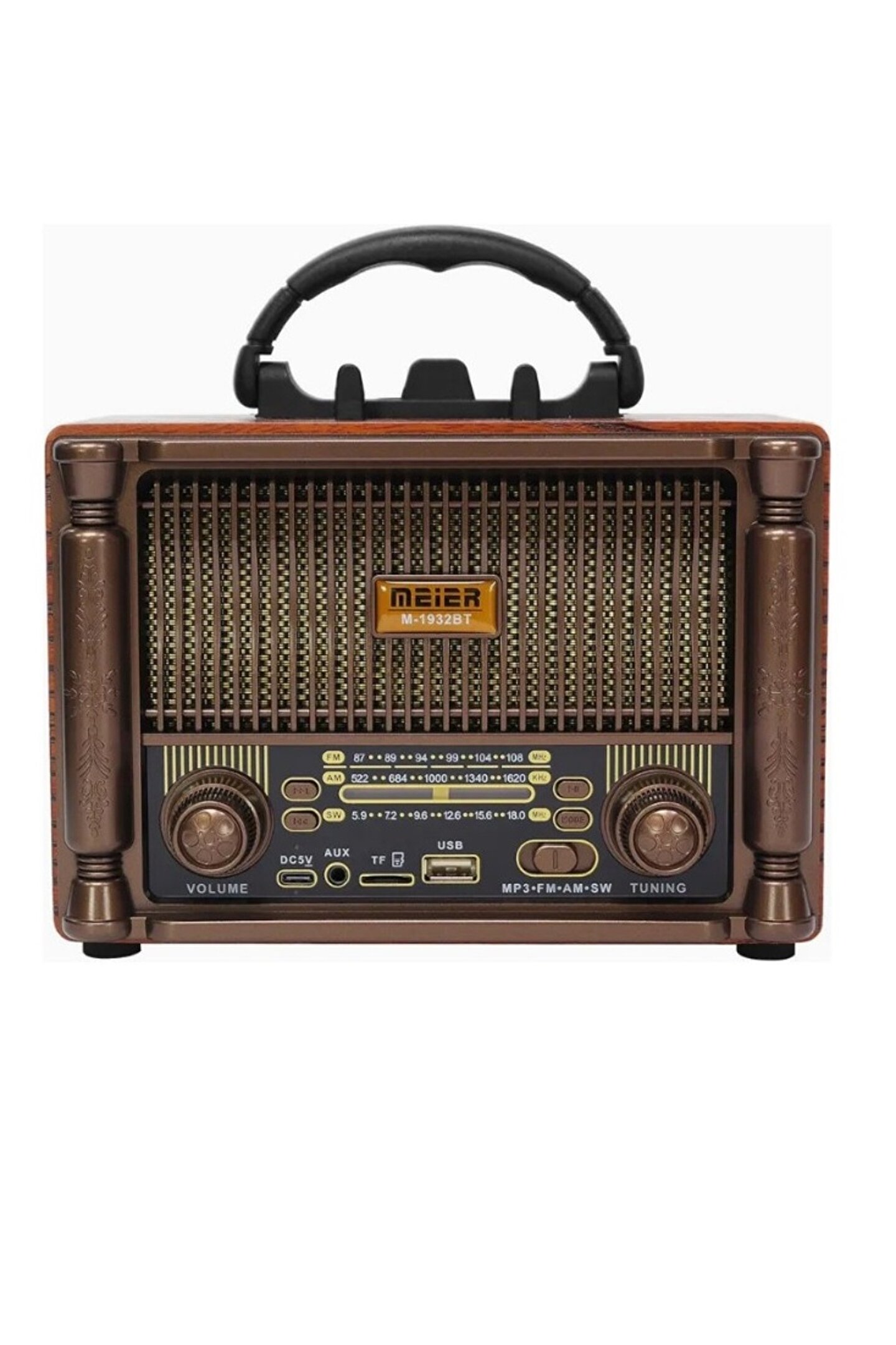 Retro Radyo Taşınabilir Meier Bluetooth Speaker ve Hoparlör Klasik Antika Tarzı Iç ve Dış Mekan Multiband USB Girişli Dekoratif Klasik Radyo 13CM x 21CM M-1932BT