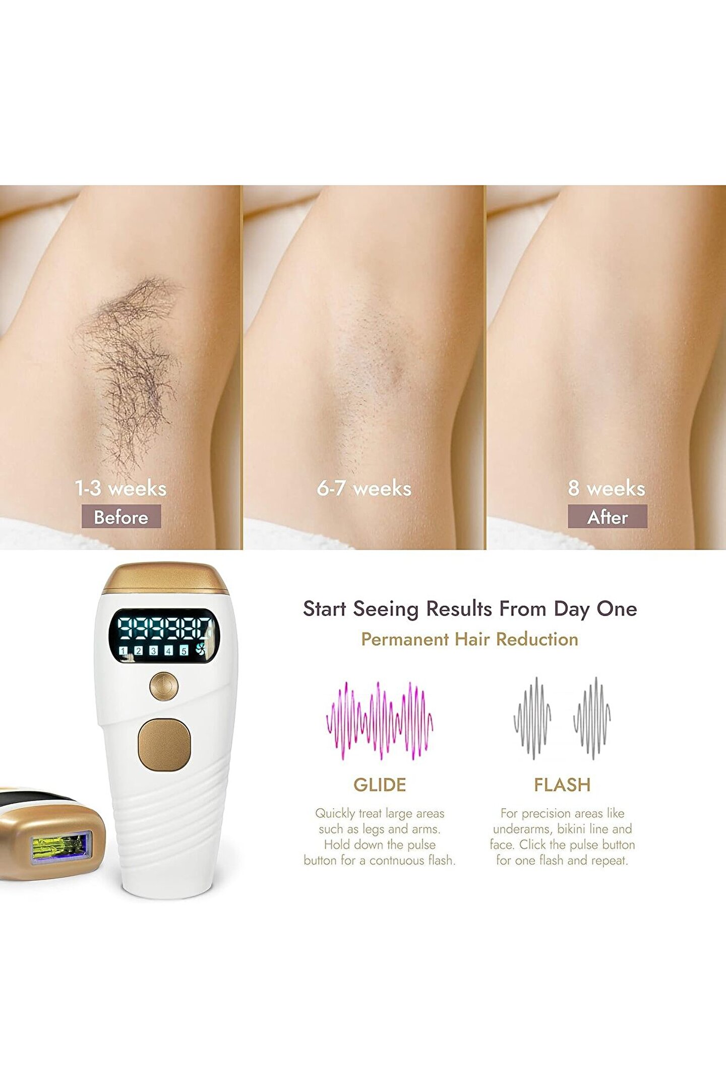 3, 5 farklı cilt tiplerine uyacak şekilde ayarlanabilir enerji seviyeleri.