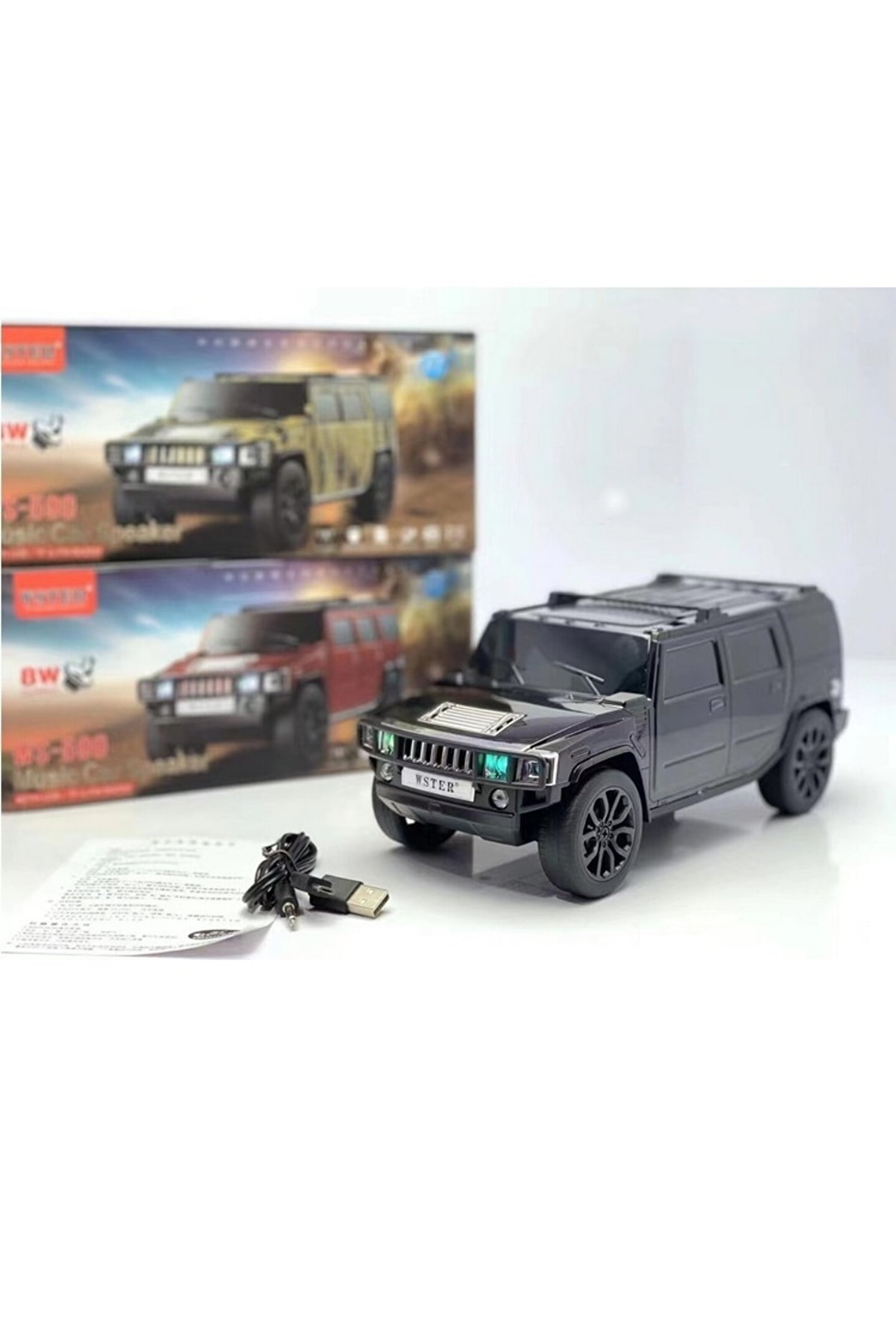 WS; 590 Hummer H5 araba şekilli wibluetooth hoparlör şarj edilebilir pil TF USB FM Handsfree AUX ile TWS Selfie Ürün detayları * Dahili 18650 pil kapasitesi: 1500mah * Güç kaynağı voltajı: 5 volt * Çıkış gücü: 8 W * Boynuz: 65MM 4Omega 8W harici manyetizma * Frekans yanıtı: 100; 18Khz * Bluetooth çözümü: bölüm 5; 0 Destek Bluetooth 5; 0 + müzik çalma ve telefon + zamanlayıcı Hacim anahtarlar tarafından kontrol edilebilir; Şarj talimatları, 90; 120 dakika oynanabilir hoparlörler Destek TF kartı, U disk Süper bas Ses bağlantı teli ve USB güç kablosu bir arada FM radyo: 88; 108 Renk: siyah, kırmızı, beyaz, ordu Unite ağırlığı: 675g Birim boyutu: 256*110*112mm Kutu boyutu: 265*120*122mm;