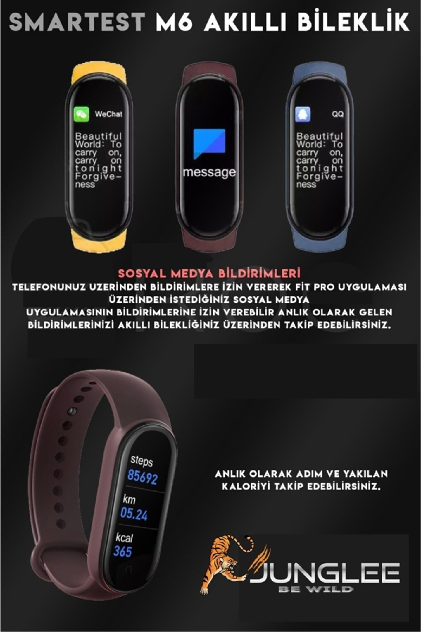 Yeni M6 SmartBand Açıklamalar: 1. ; Konforlu Giyim: Zarif ve şık bir tarzda, ince ve ultra hafif tasarımlı, spor bileziği rahat kıyafet sağlar. ; Büyük 0.96 inç LCD ekran, GLESE'de bile zaman ve verileri açıkça okumanıza izin verir. ; Sağlık verilerinizi ekrandaki ve saatinizi tercihlerinize göre kişiselleştirmenize olanak sağlar. ; 2. ; Çok fonksiyonlu spor izci: Bu güçlü bir fitness izcidir. ; Aktivitelerinizi izleyebilir ve gün boyunca gerçek zamanlı konum izlemesi elde edebilir. ; Cihazı Cep Telefonu uygulamanıza bağlayın Çalışma istatistikleri hız konfigürasyonu dakikalar / km, kalori ve mesafe tüketimini görüntüleyebilir ve egzersiz rota haritanızı kaydedin. ; 3. ; Sağlık izleme: Etkinlik Fitness Tracker, günlük sağlığınızı izlemek için kullanılabilir, tüm gün aktiviteleri, daha sağlıklı bir ömre ayarlamanıza yardımcı olmak için adımlar, mesafe, kaloriler yanmış, aktivite dakikaları ve uyku durumu gibi tüm günlük aktiviteleri doğru şekilde kaydeder. ; Uygulama bağlantısı kesilmiş olsa bile bağımsız çalışabilir. ; 4. ; IP67 Su Geçirmez Akıllı Hatırlatma: Akıllı saat, daha su geçirmez ve toz geçirmez olan IP67 su geçirmez malzemeden yapılmıştır. ; Ancak lütfen sıcak suda kullanmaktan kaçının. ; Lütfen iç veya dış mekan sporları ve fitness için serbestçe kullanın. ; Spor meraklıları için, bu iyi bir arkadaştır. ; Cep telefonu bir arama veya metin mesajı alırsa, sizi aramayı hatırlatmak için titrer ve bir metin mesajı bildirimi görüntülenecektir, bu nedenle önemli bir mesajı asla kaçırmazsınız. ; 5. ; Daha geniş uyumluluk: Akıllı izleme, hareketsiz hatırlatıcılar, çalar saatler, tıp, içme suyu, toplantı hatırlatıcılarını, kronometreleri vb. ; Destekler. ; 3-5 günlük çalışma süresi boyunca tam şarj. ; Android 4.4 veya üzeri için Bluetooth 4.0 BLE veya üstünü kullanmak için çoğu akıllı telefonları destekleyin. ; Özellikler: 1. ; Ekran Boyutu: 0.96 inç Ekran 2.Sporlar: Koşma, tırmanma, bisiklete binme, yüzme, futbol oynuyor 3.Battery Casative: 90mAh Pil 4. ; istekli süresi: yaklaşık 3 ~ 5 gün 5.Life Su Geçirmez: Ellerinizi ve yağmurunuzu yıkayabilirsiniz, ancak banyo yapamazsınız. ; 6.SSYNC Bildirimler: Facebook için, Whitter için, WhatsApp için, LinkedIn için, vb. ; 7.Pedometre: Monitör Adımları, Mesafe, Kalori Tüketim 8.SLEEP Monitör: Uyku kalitenizi izlemeye yardımcı olun 9.Reminder: dinlenme hatırlatma, ilaç hatırlatma almak, su hatırlatma, toplantı hatırlatma Paket listesi: M6 akıllı bilezik * 1 Şarj kablosu * 1 Talimat * 1;