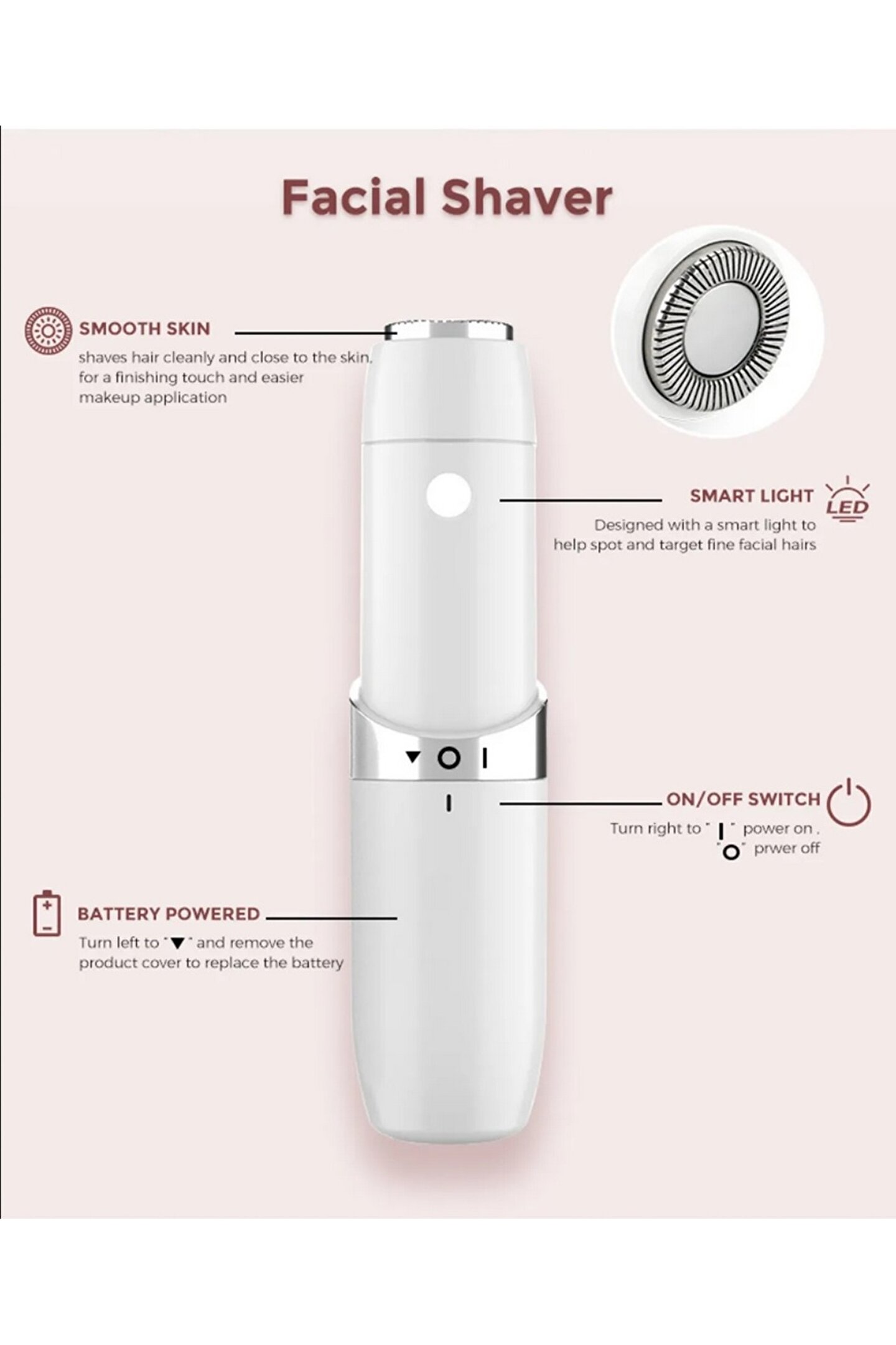 JUNGLEE Yüz Epilasyon Aleti Acısız Kadın Yüz Tüyü Temizleyici Taşınabilir Traş Makinesi 10.000RPM LED Işıklı