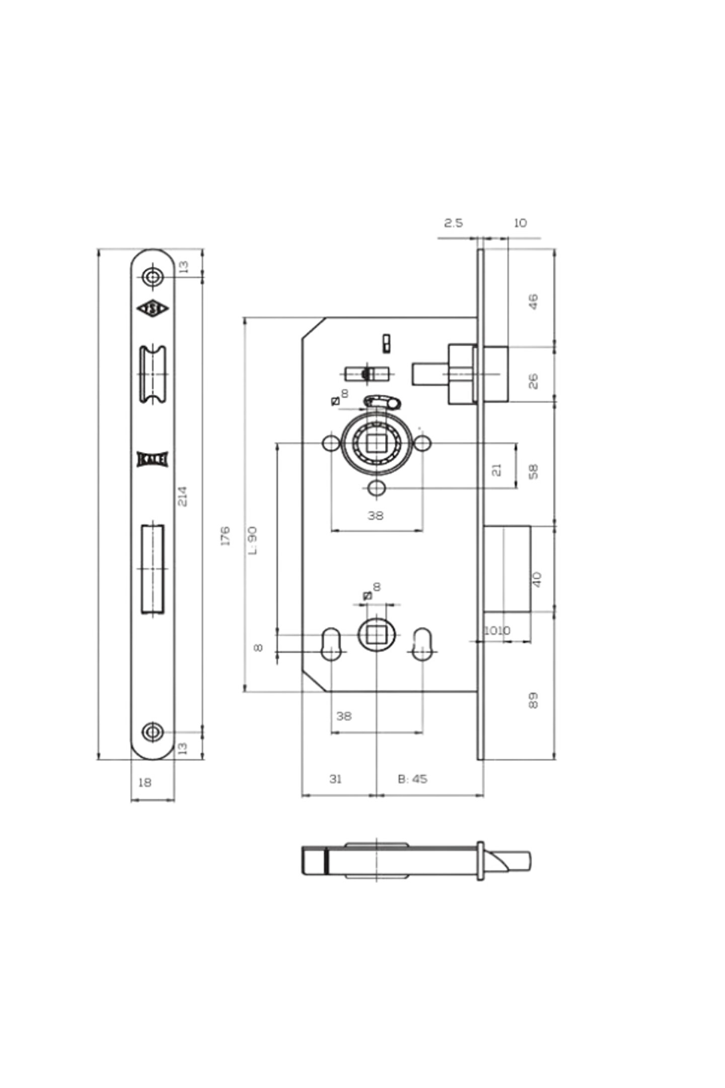 Kale Extra Gömme Kilit WC 18 Mm Ayna 45 Mm 149RWC