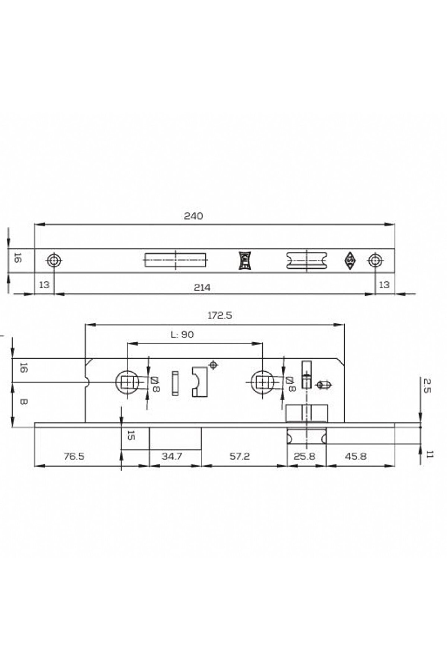 Sürgü: Zamak döküm. Krom kaplamalı. Tek turlu.