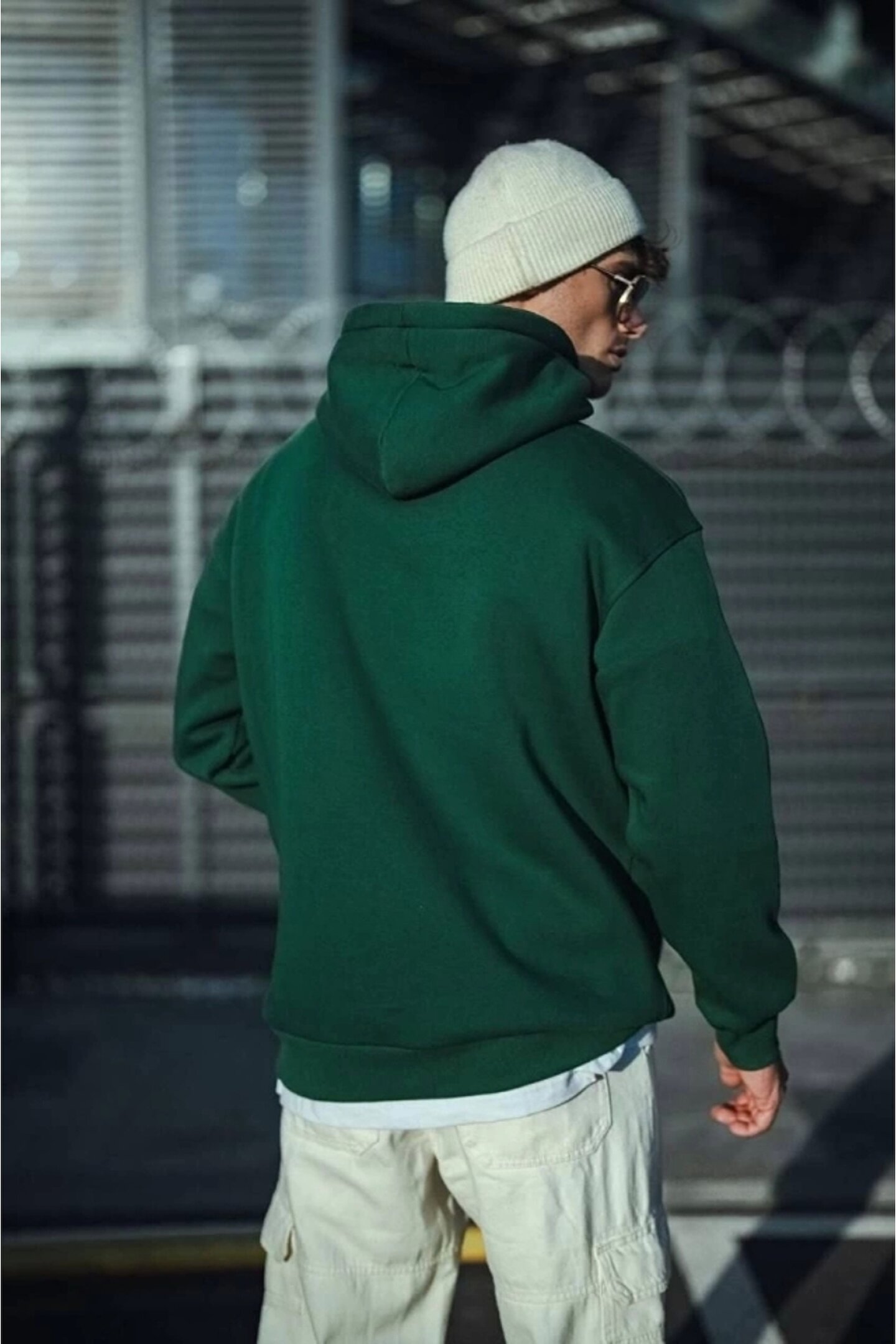 kalimbus Üç İplik Penye Kapşonlu Basic SweatShirt - Haki