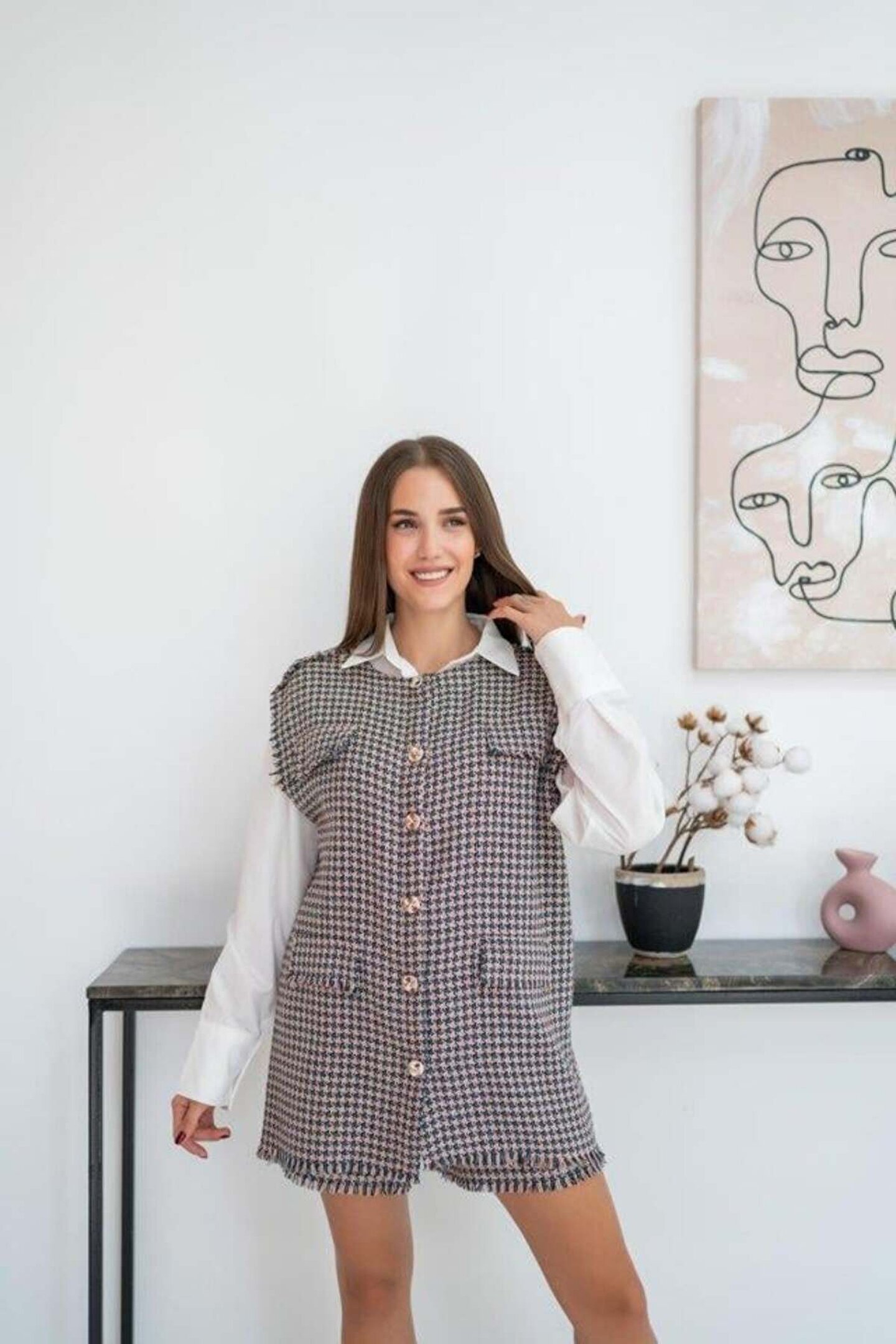 Kaplan Mavi Kazayağı Desenli Yelek Ve Şort Takım