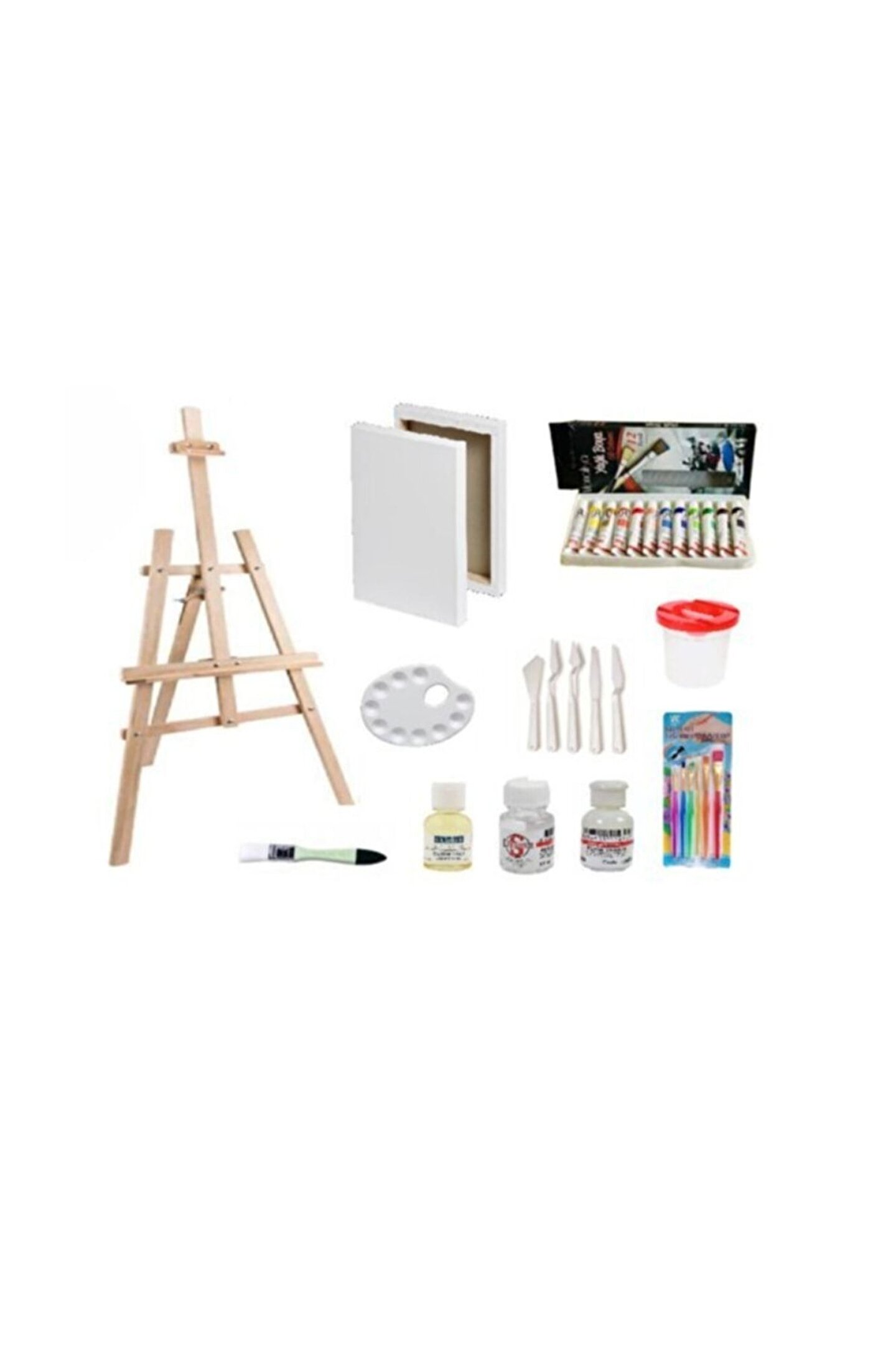 Yağlı Boya Başlangıç Seti Ahşap Şövale 175 Cm Boyanabilir Verniklenebilir