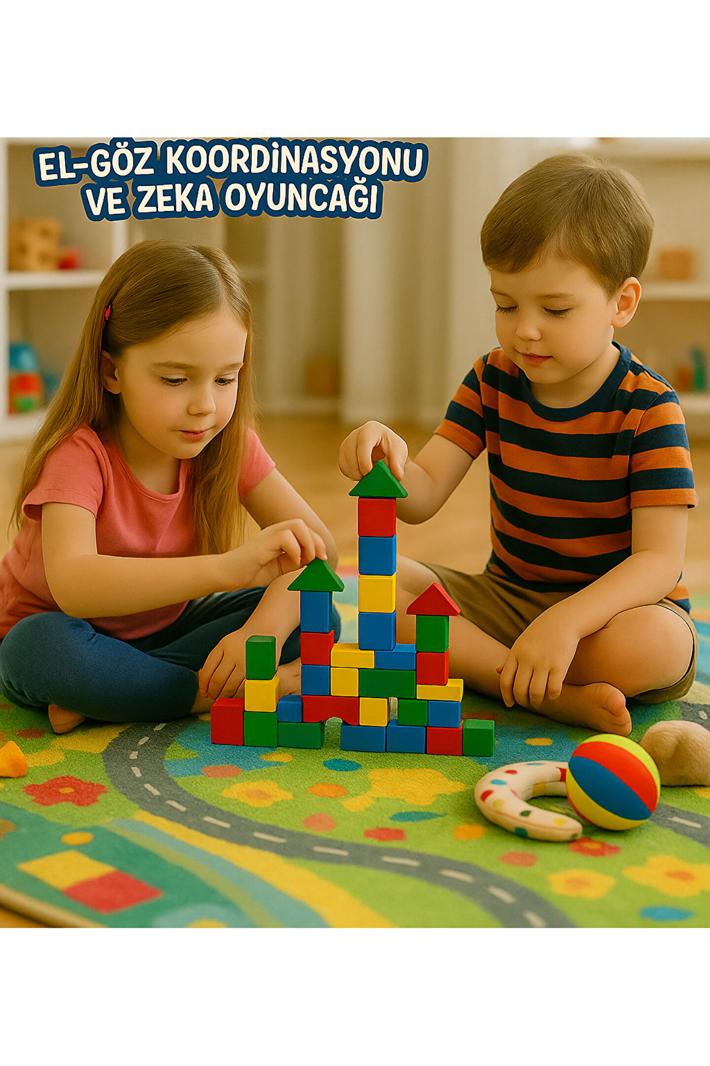 Woodoy 60 Parça Renkli Ahşap Bloklar Woodoy 60 Parça Ahşap Bloklar ile hayal ettiğiniz şekilleri ortaya çıkartın! Ahşap bloklar ile dilediğiniz şekilleri inşa edin, yıkın ve tekrar tekrar yapın! Çocuklar renkli Ahşap Bloklar ile istedikleri şekilleri yaparken eğlenceli vakit geçirecekler.; Kare, üçgen, daire, dikdörtgen gibi farklı şekillerdeki renkli ahşap blok parçalar sayesinde geometrik sembolleri öğrenecektir.; Bu eğitici ve eğlenceli oyuncak çocukların; yaratıcılık, el-göz koordinasyonu, ince motor becerileri, dikkat, odaklanma ve hayal güçlerinin gelişmesine yardımcı olmaktadır.; Ayrıca; Oyun sonrası çocuğunuzun parçaları kutuya kendi başına koyması ile sorumluluk alma becerisini geliştirir.; Yaş Grubu : 18+ Ay Barkodu: 8699916500173 Item No : KR017 Kutu Ölçüleri : 23 x 14,5 x 14,5 cm.; Desi Değeri: 2