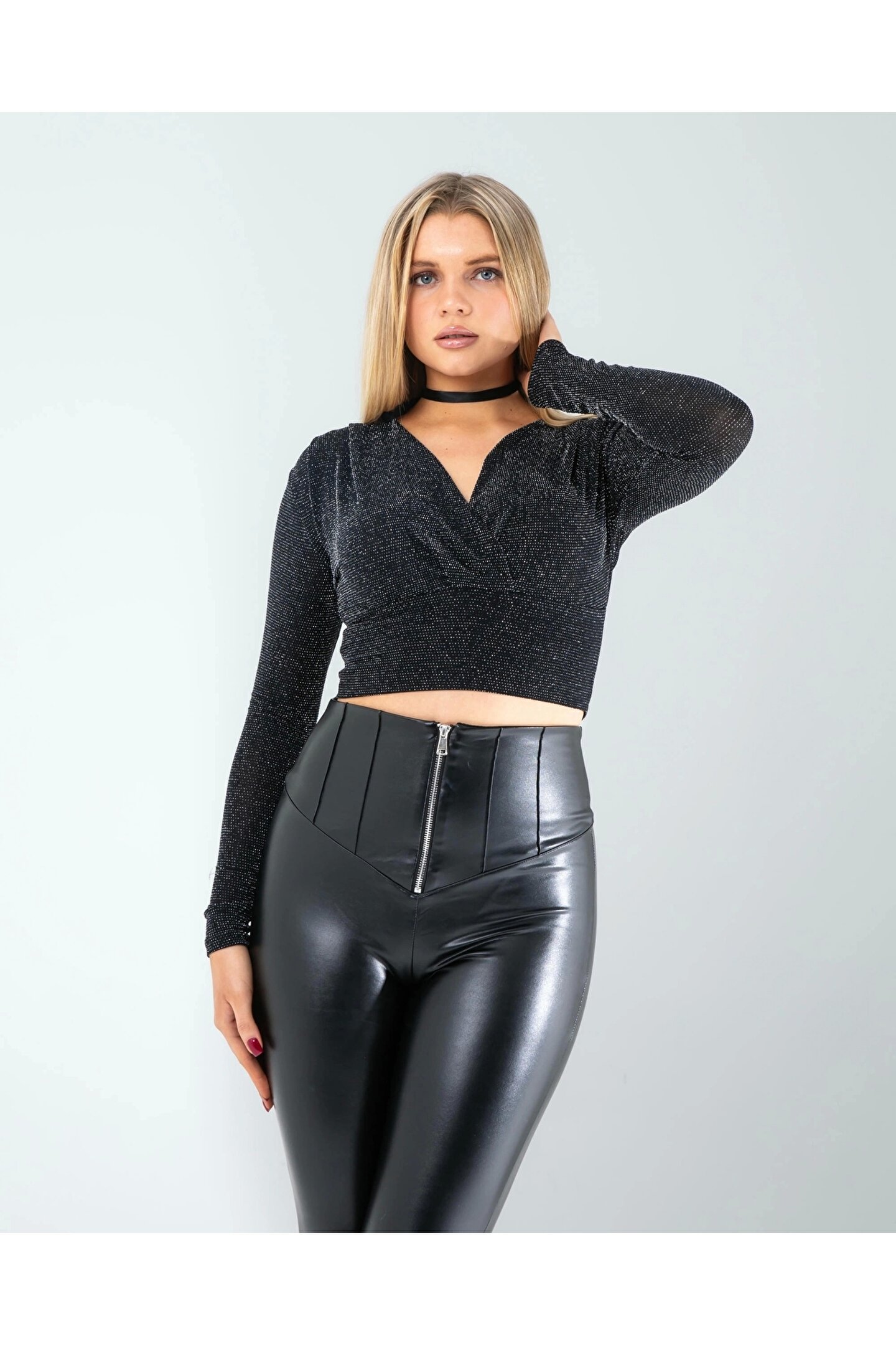 KarşıVitrin Fermuar Detay Deri Tayt