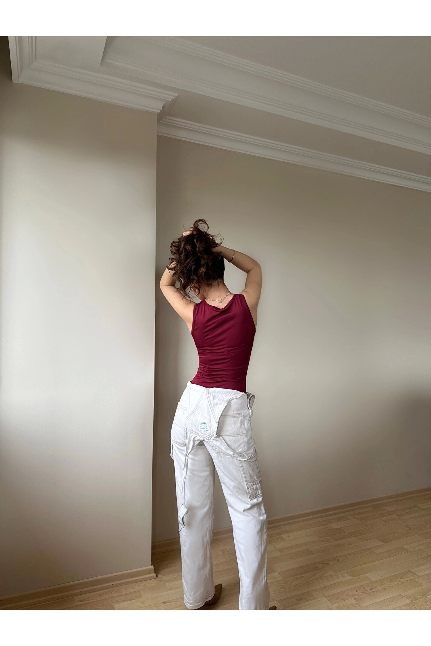 KarşıVitrin Halter Yaka Bordo Bodysuit