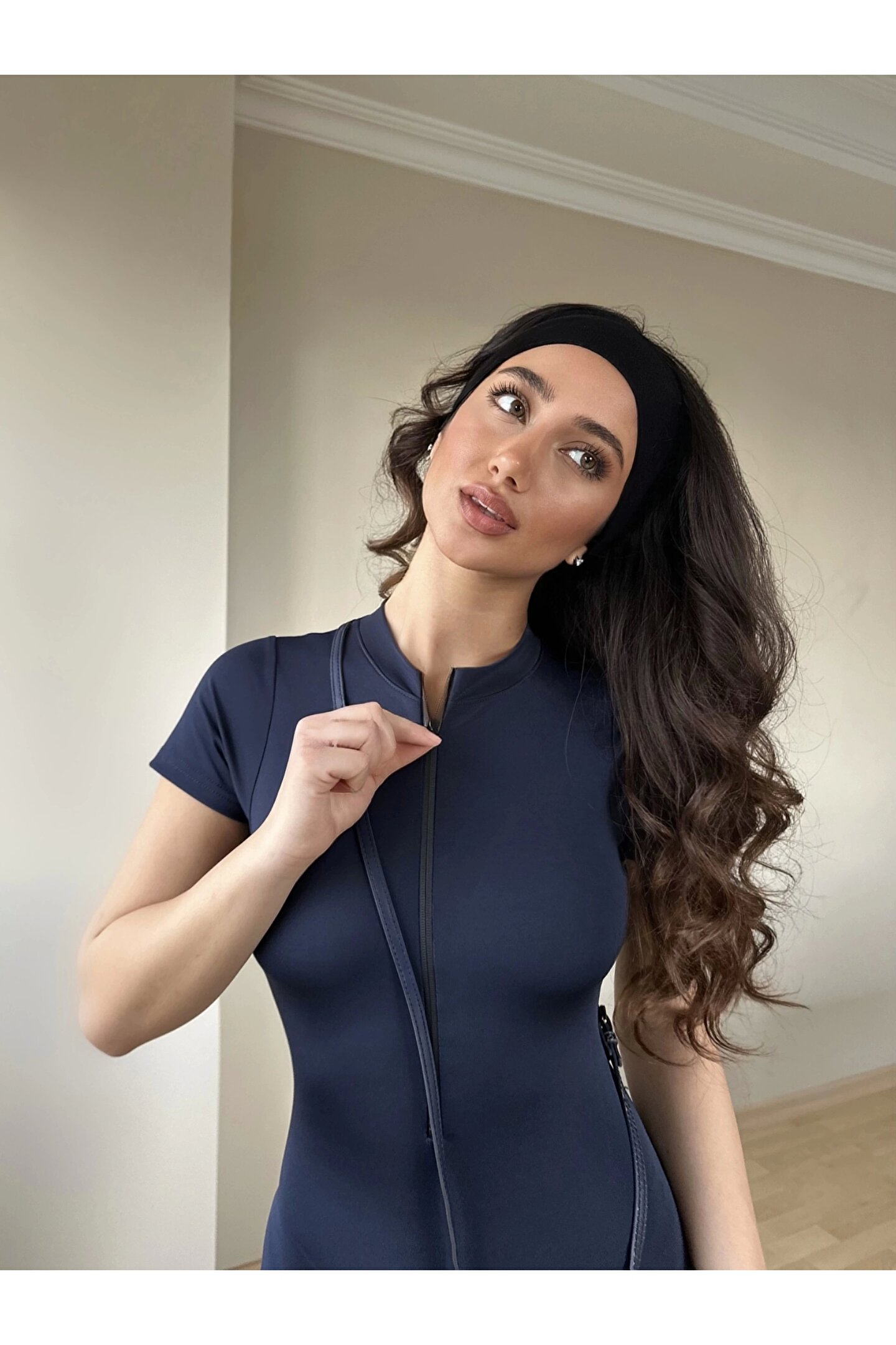 Lacivert Fermuarlı Şort Tulum