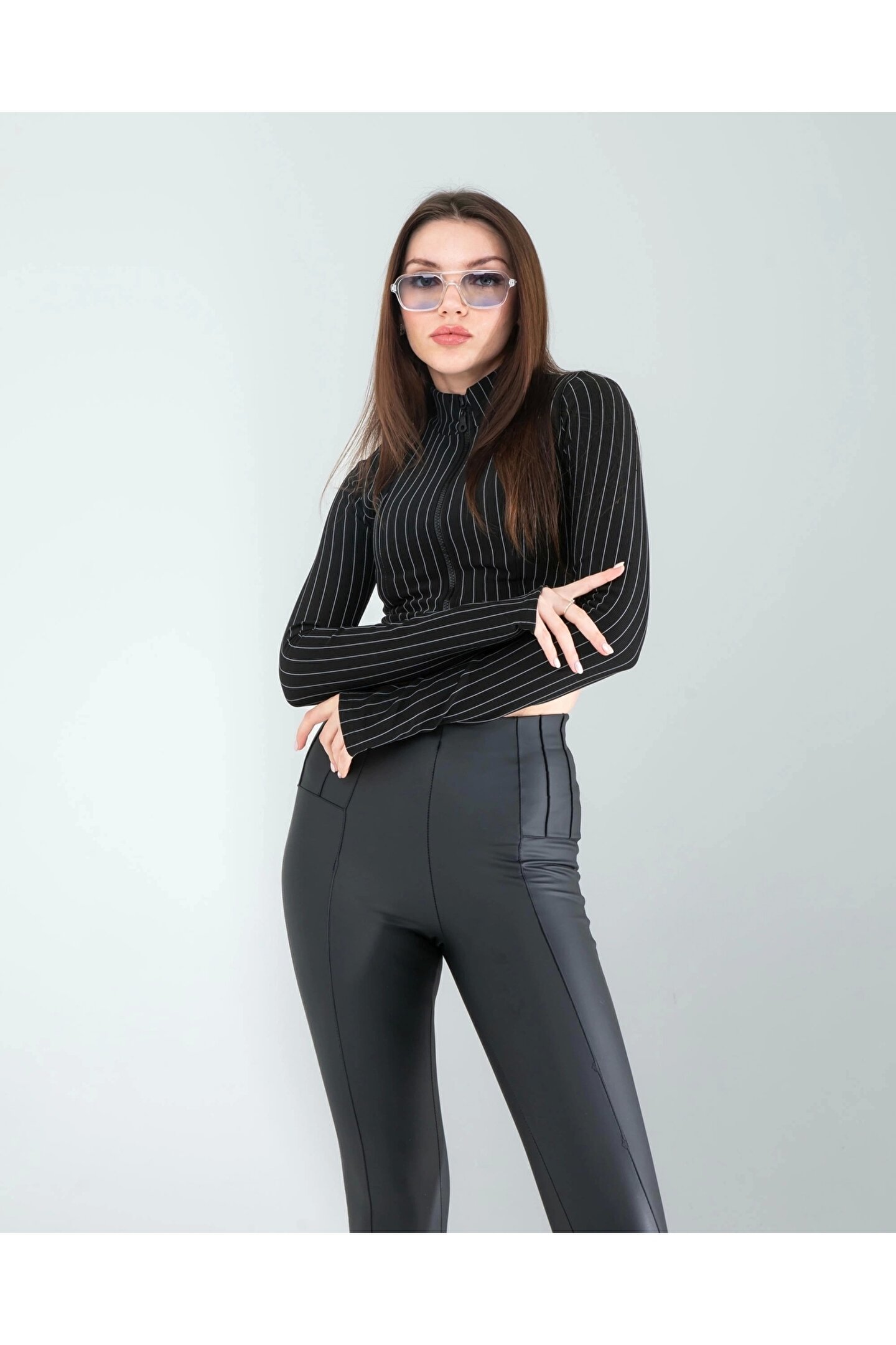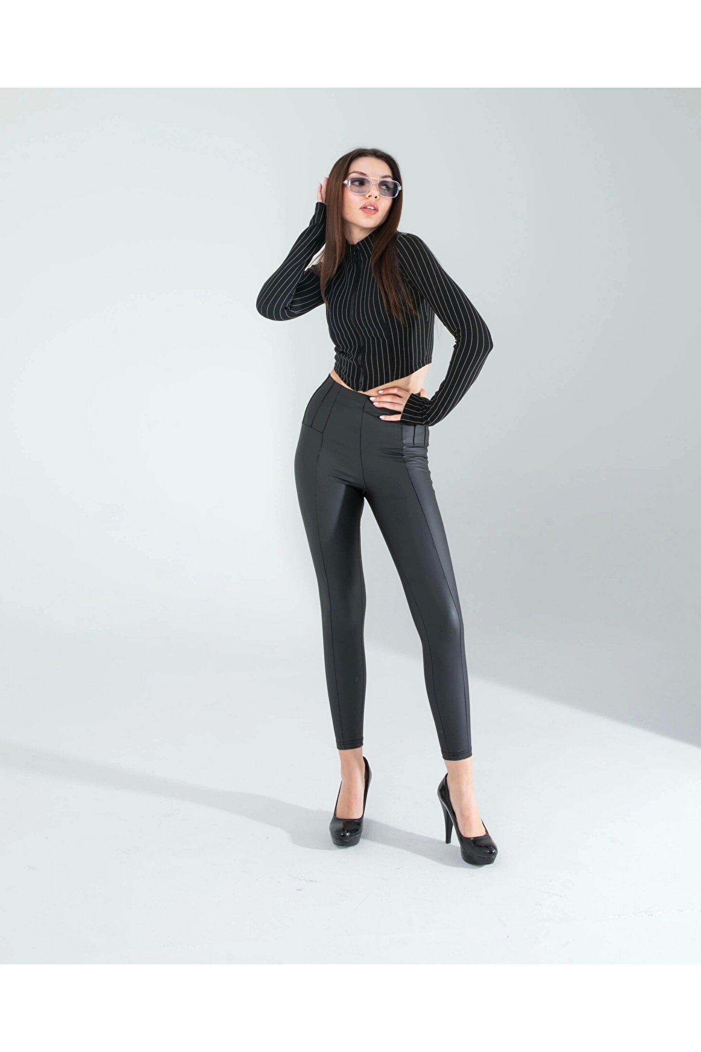 KarşıVitrin Siyah Nevru Deri Tayt