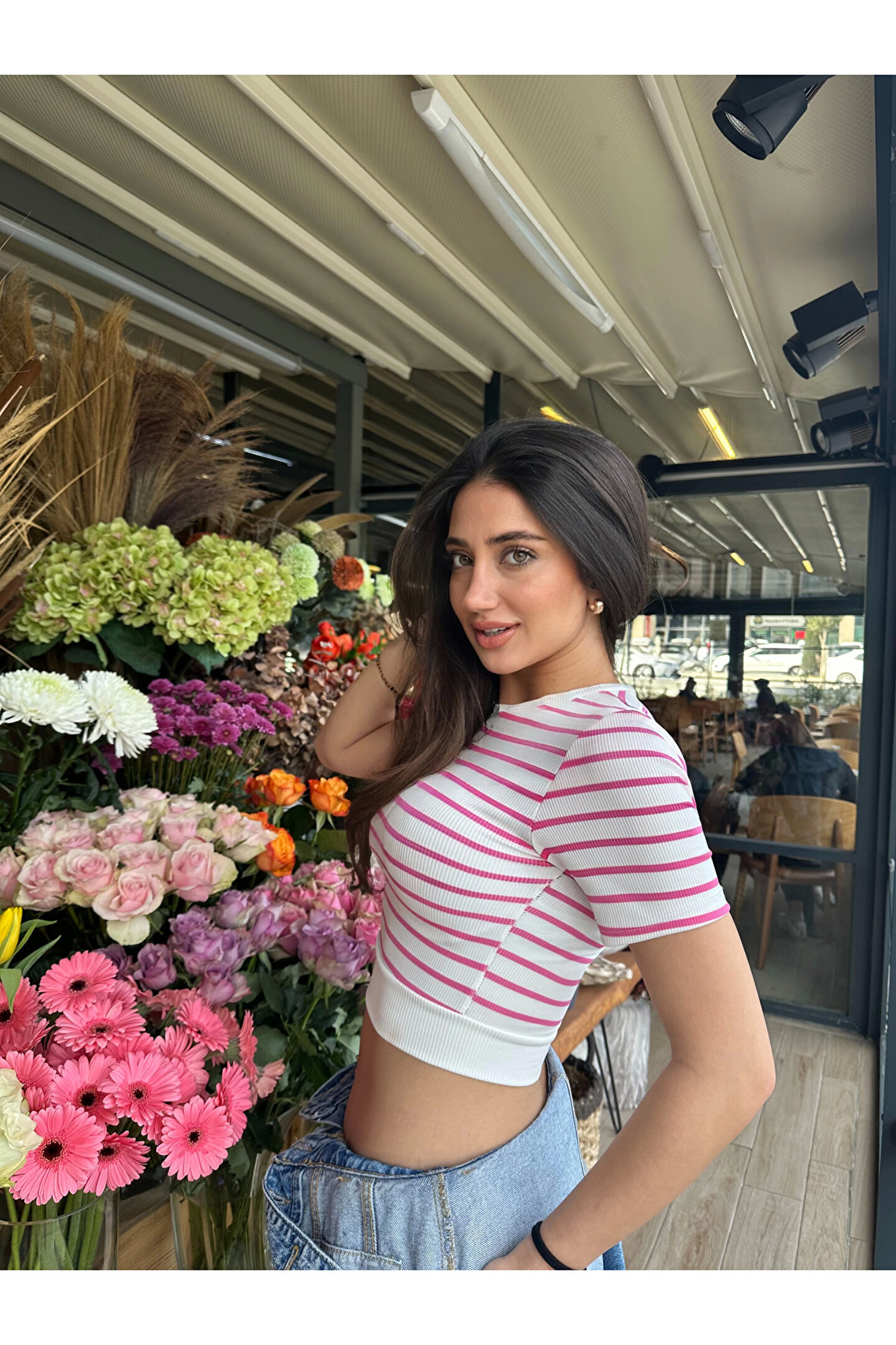 SMK Shop Fuşya Çizgili Manşetli T-Shirt