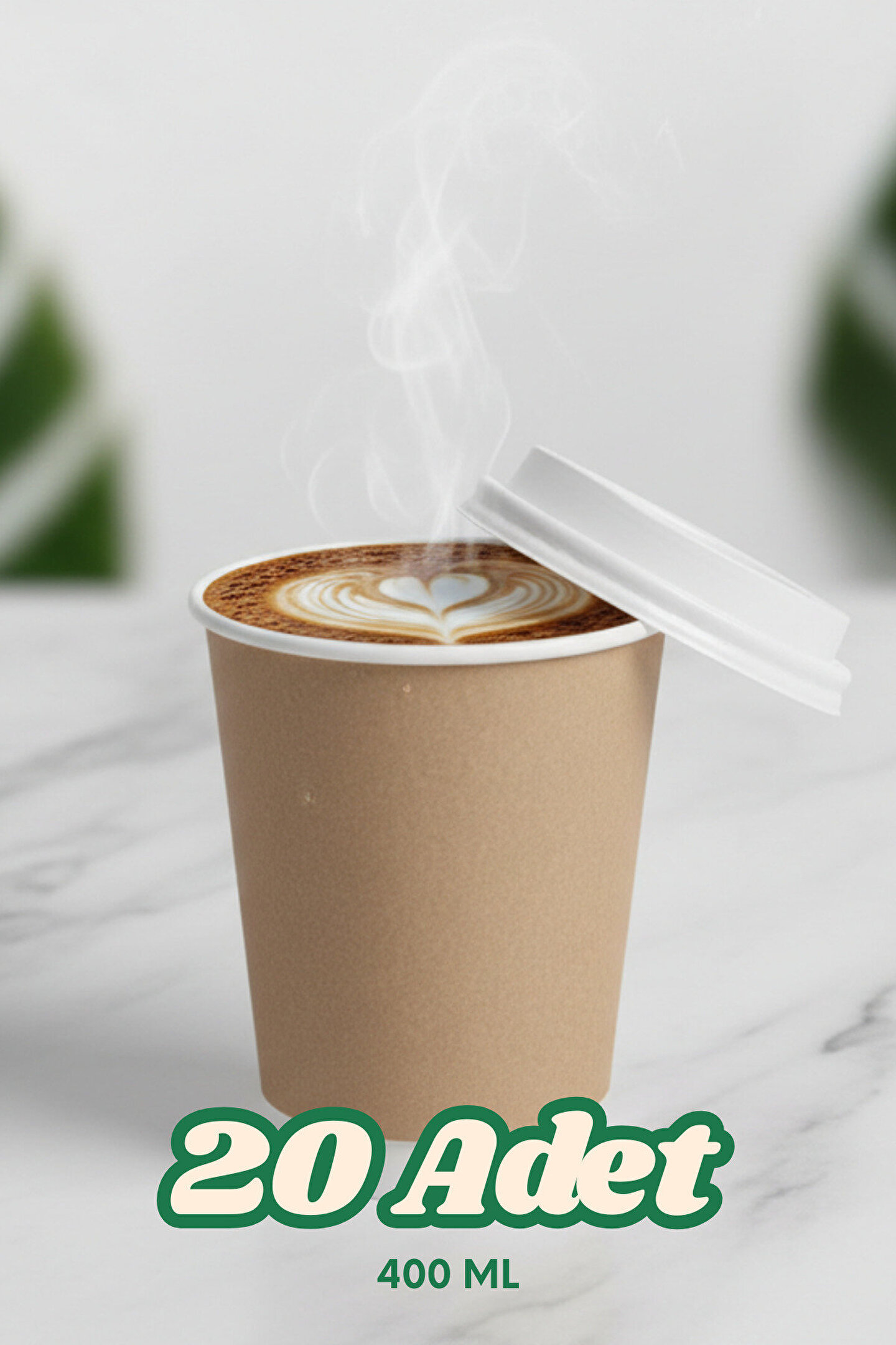 20 Adet Double Wall Kraft ve Kapak 14 oz