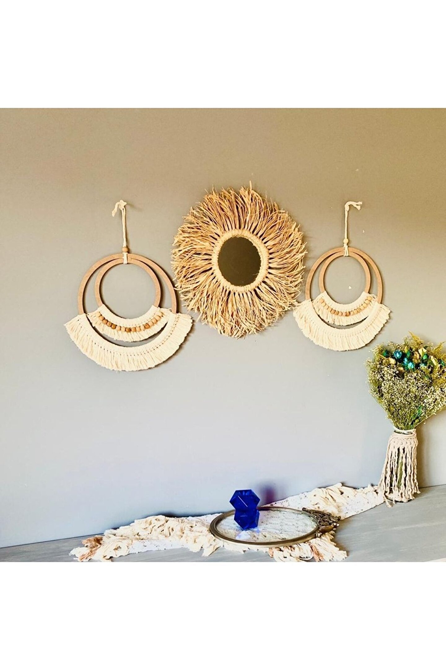 Wall Art Bohem Makrome Ve Rafya Duvar Dekorasyon Ürünü 3lü Set