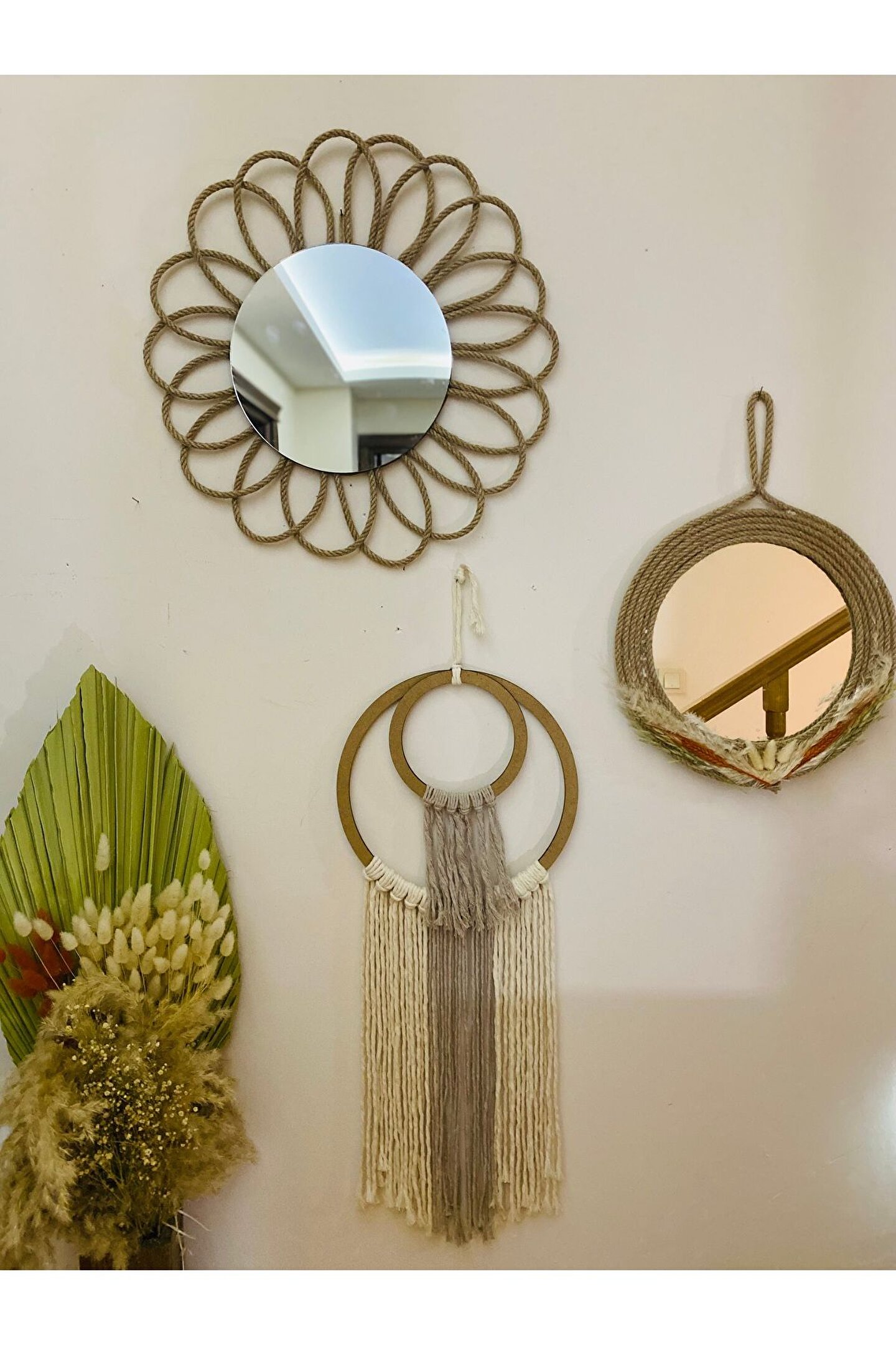Wall Decoration Art Bohem Makrome Yıldız Ve Boncuk Detaylı Duvar Dekorasyon Ürünü 3’lü Set