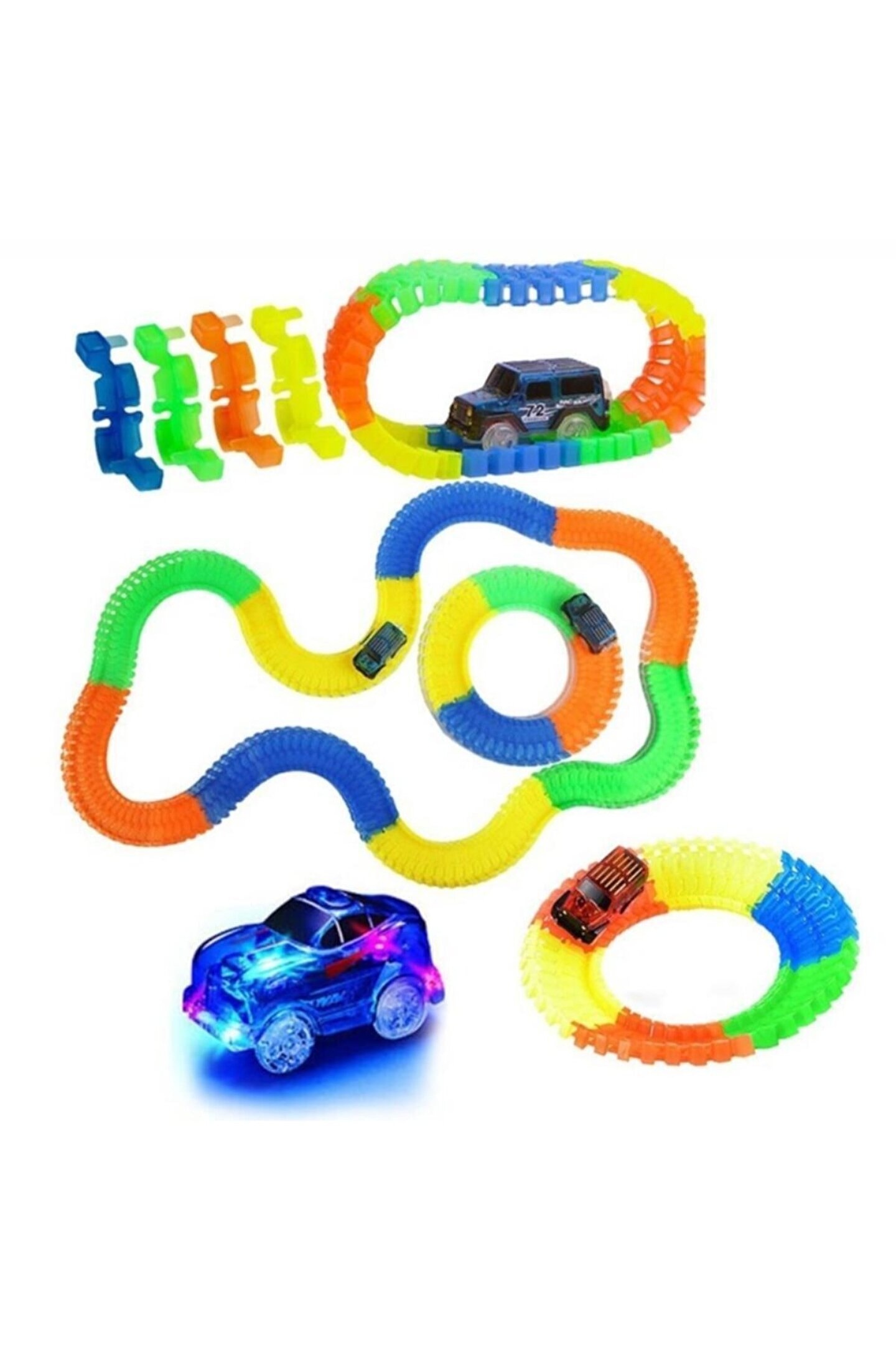 Magic Tracks Pilli Hareketli Raylar 384 Parça Oyuncak Araç Yol Seti Bir sonraki seviyeye yarışmaya hazır mısınız? Sonsuz kombinasyonlara ve sonsuz eğlenceye olanak tanıyan, kolayca takılıp çıkarılabilen esnek, güçlü ve sağlam paletlerle! Bunlar, daha önce hiç görmediğiniz gibi kıvrılan ve parıldayan tamamen yeni, havalı yarış pistleri. ; Yarış arabası etrafta dolaşırken bile parkuru 360 derece sihirli bir şekilde bükebilir, esnetebilir ve eğebilirsiniz. ; Sadece parçaları bir araya getirin ve kendi yaratımınız için tamamen özelleştirilmiş bir hız elde edin. ; Ve daha da iyisi, ışığı kapattığınızda, Magic Tracks süper parlak parlıyor. ; İçerisinde iki adet araba bulunuyor. ; Yaş Grubu: 3+ 1 X 1,5V AA pil ile çalışır. ; Piller ürüne dahil değildir. ; Kutu Ölçüleri: 44 x 32 x 7,5 Cm Tanıtım Videosu:;