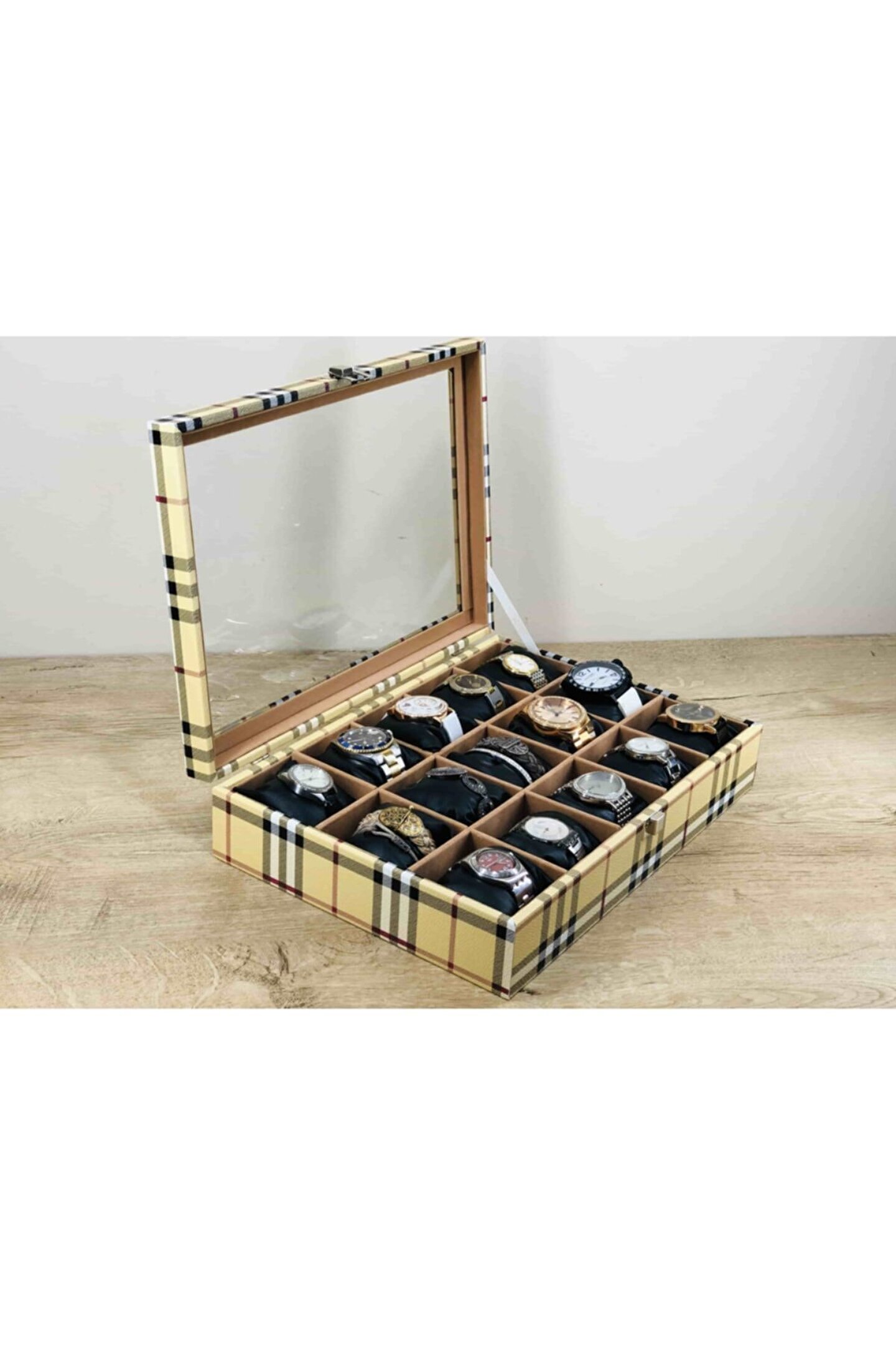 %100 orijinal türk malıdır türkiye'de üretilmiştir çin malı değildir imalattan halka satış fabrikasyon yapımı değildir tamamen el yapımıdır 15 adet büyük boy gözlüdür 15 adet siyah vinlex kaplama yastık silikon dolgulu yumuşak yastıklar her boyuttaki saatlere kolaylıkla uyar spor ve klasik saatler için uygundur bayan ve erkek modellerine uyumludur yurt dışına gönderim ve imzalı teslimat vardır boyutları : Dış kutu boy : 241mm dış kutu en : 341mm. ; Dış kutu yükseklik : 81mm. ; Iç göz boy : 7.1mm. ; Iç göz en : 6.1mm. ; Iç göz yükseklik : 7.1mm. ; Kilit en : 25mm. ; Kilit boy : 32mm. ; Mentese boy : 18mm. ; Mentese en : 21mm. ; Resimler orjinal kendi çekimlerimizdir resimdeki saat kutusu gönderilicektir ürünlerin hepsi stoklarımızda mevcuttur stoktan aynı gün anlaşmalı kargo ile adresinize gönderilmektedir ana gövde : 5mm. ; Ahşap gövde üstü : 2mm mukavva iç kaplama :;