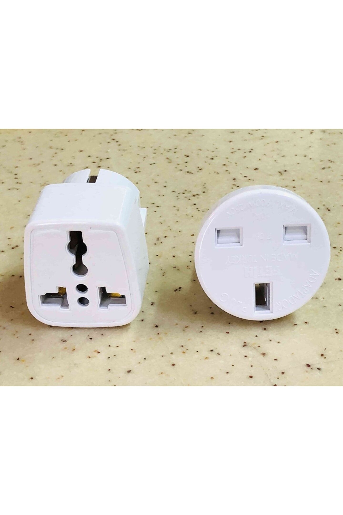 2 Adet Birbirinden Farklı ABS Plastik Çevirici Fiş Ucu ; 1. İngiliz Ucunu Türk Prizine Çeviren Beyaz Renkli Yuvarlak Topraklı Dönüştürücü ; 2. Amerikan + İngiliz Ucunu Türk Prizine Çeviren Beyaz Renkli Kare Tipi Dönüştürücü ; Yurtdışındaki prizlere uygun ürünleri çalıştırma konusundaki problemi çözmek için Kullanılır ; 2 ADET RESİMDE GÖRÜLEN ÇEVİRİCİLER GÖNDERİLECEKTİR ;