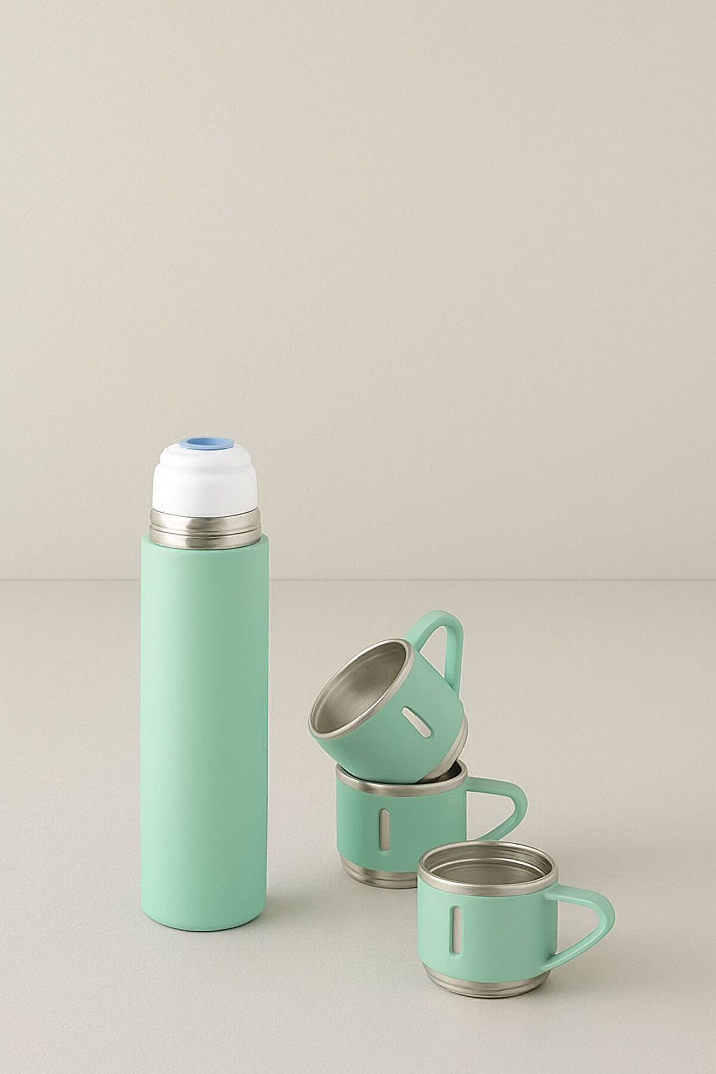 ; Günlük kullanımda ve dış mekan aktivitelerinde içeceklerinizi yanınızda taşımak artık daha şık ve pratik! 3 Parça Paslanmaz Çelik Termos, 500 ml kapasitesi ve modern su yeşili rengiyle hem işlevsel hem estetik bir deneyim sunar.; 6 saate kadar sıcak tutma özelliği ile içeceğinizin ideal sıcaklıkta kalmasını sağlar.; 3 ayrı çelik bardak tasarımı sayesinde sevdiklerinizle paylaşmak için mükemmel bir seçimdir.; Paslanmaz çelik yapısı, içeceklerinizi hijyenik ve güvenli şekilde muhafaza eder.; ; Öne Çıkan Özellikler: •Paslanmaz Çelik Gövde: Sağlıklı ve uzun ömürlü kullanım sunar.; •500 ml Kapasite: Hem sıcak hem soğuk içecekler için ideal hacim.; •3 Parça Bardaklı Tasarım: Pratik kullanım ve paylaşım imkanı.; •Sızdırmaz Kapak: Taşımada güvenli kullanım sağlar.; •Modern Su Yeşili Renk: Estetik ve dikkat çekici görünüm.; •Elde Yıkama Tavsiye Edilir.