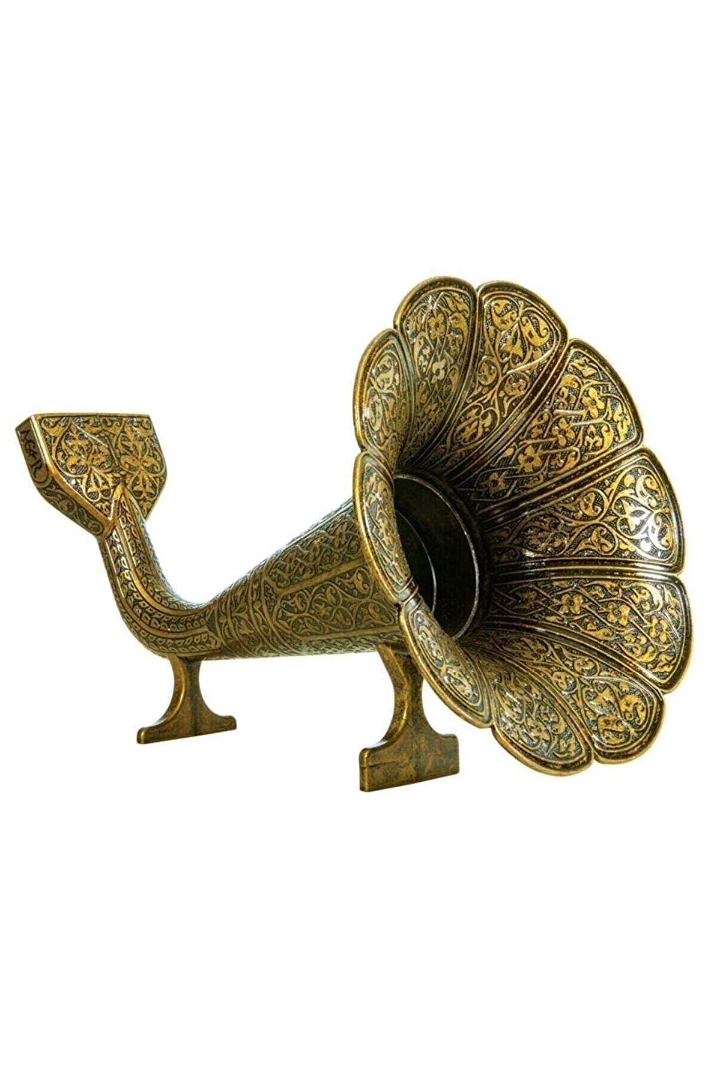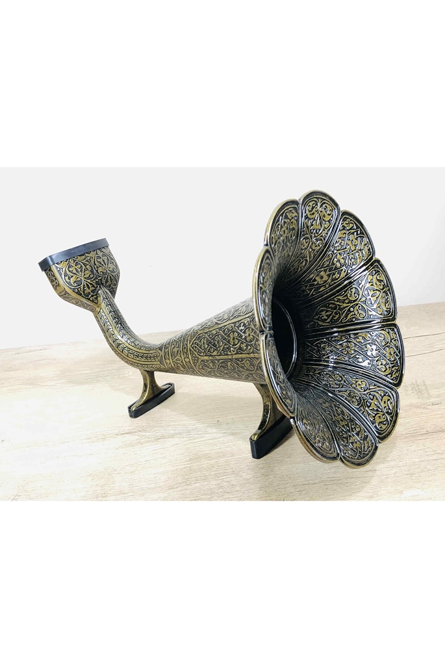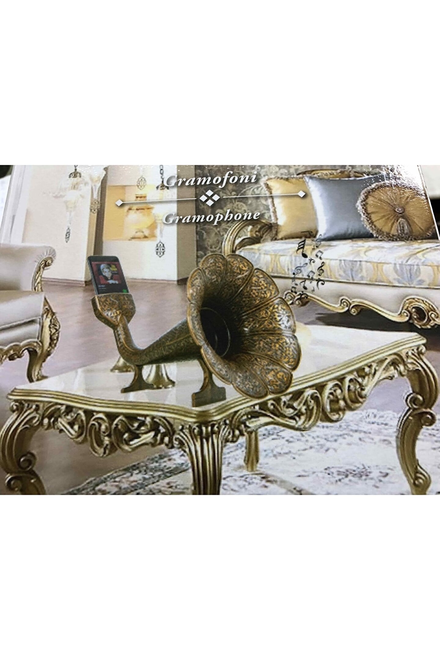 ÜRÜNÜMÜZ GERÇEK METALDEN ÜRETİLMİŞ TÜRK MALIDIR ; DEKORATİF ANTİK TARZDA SÜSLEMELERLE BEZENMİŞTİR ; GRAMOFON GİBİ CEP TELEFONLARININ SESİNİ YANKILAR ; Ürün Özellikleri ; Kararmaya Karşı Özel Olarak Metal malzemeden üretilmiştir.. ; Telefonunuzdan çıkan sesi kaliteli bir şekilde yükseltir ; Tüm Telefonlara Uyumlu Dekoratif Şık Gramofon Hunisi. ; Ürün Ebatları ; Uzunluk : 35 cm ; Genişlik : 24 cm ; Yükseklik: 25 cm ; Ağırlık: 1841 Gram ; Kullanımı ; Kimyasal İçerikli Deterjan vs. Temizlik Maddeleri ile Silmeyiniz ; Bulaşık Makinasında Yıkamayınız ; Islak, Nemli veya Güneşli Ortamlarda Bırakmayınız ; Sadece Kuru Bez İle Siliniz ;