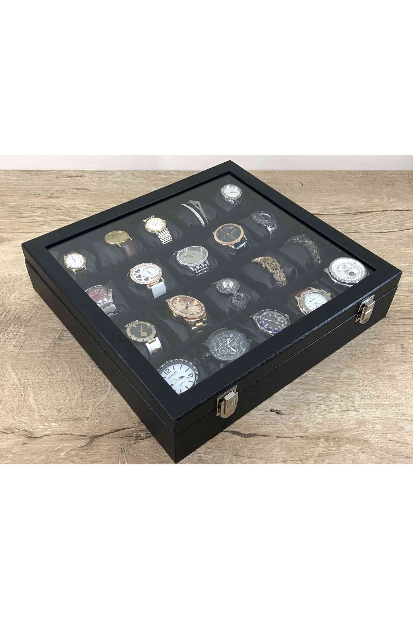 Şık ve zarif tasarımıyla dikkat çeken siyah deri kaplama, her türlü dekorasyona kolayca uyum sağlar; 20 adet kol saati için geniş iç hacmiyle, saatlerinizi düzenli ve korunaklı bir şekilde saklamanızı sağlar; Deri malzemesi sayesinde dayanıklılık ve uzun ömürlü kullanım sunar; Kolay erişilebilir bölme düzeni ile saatlerinizi hızlıca bulmanızı ve kullanmanızı kolaylaştırır;