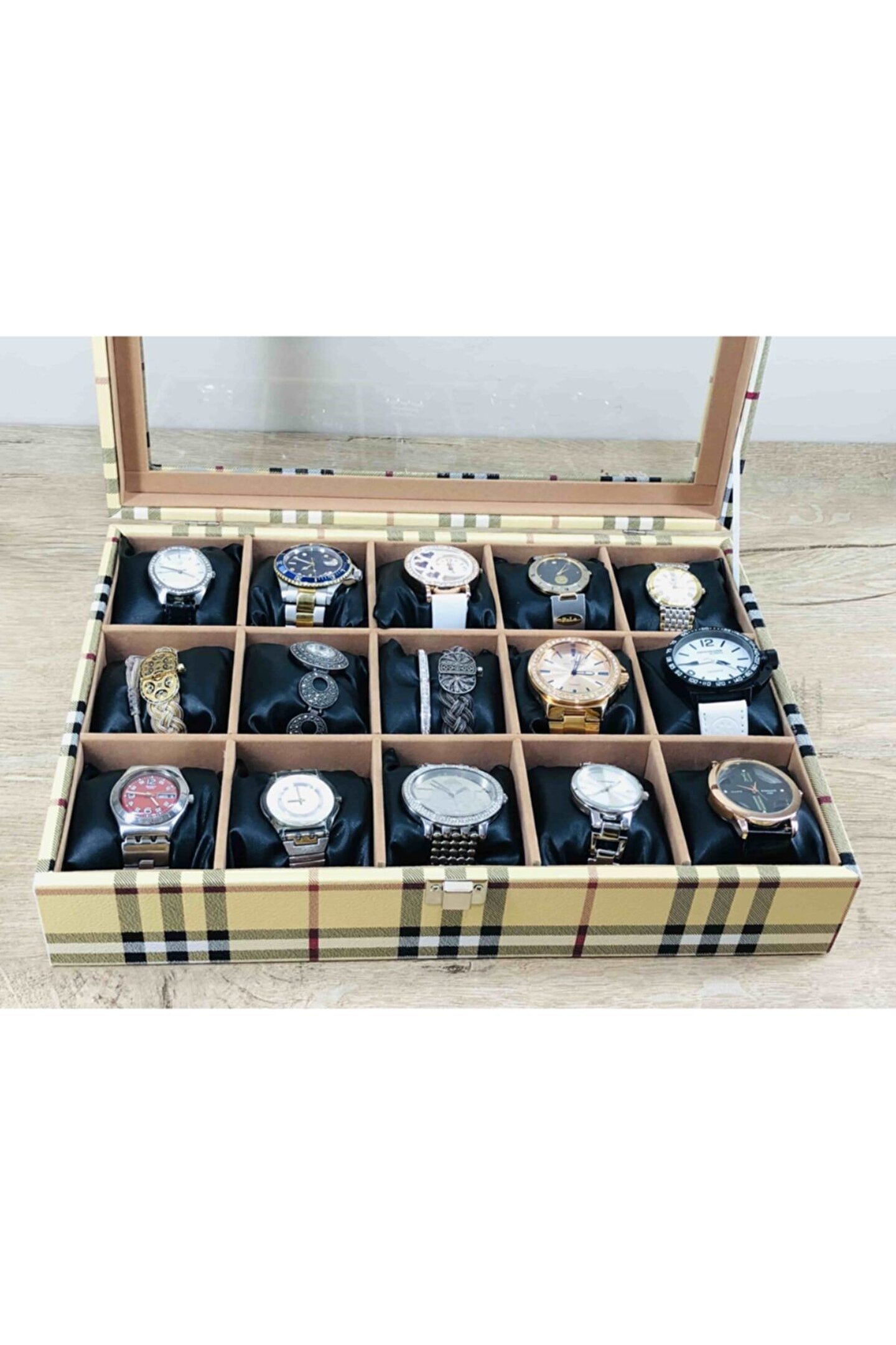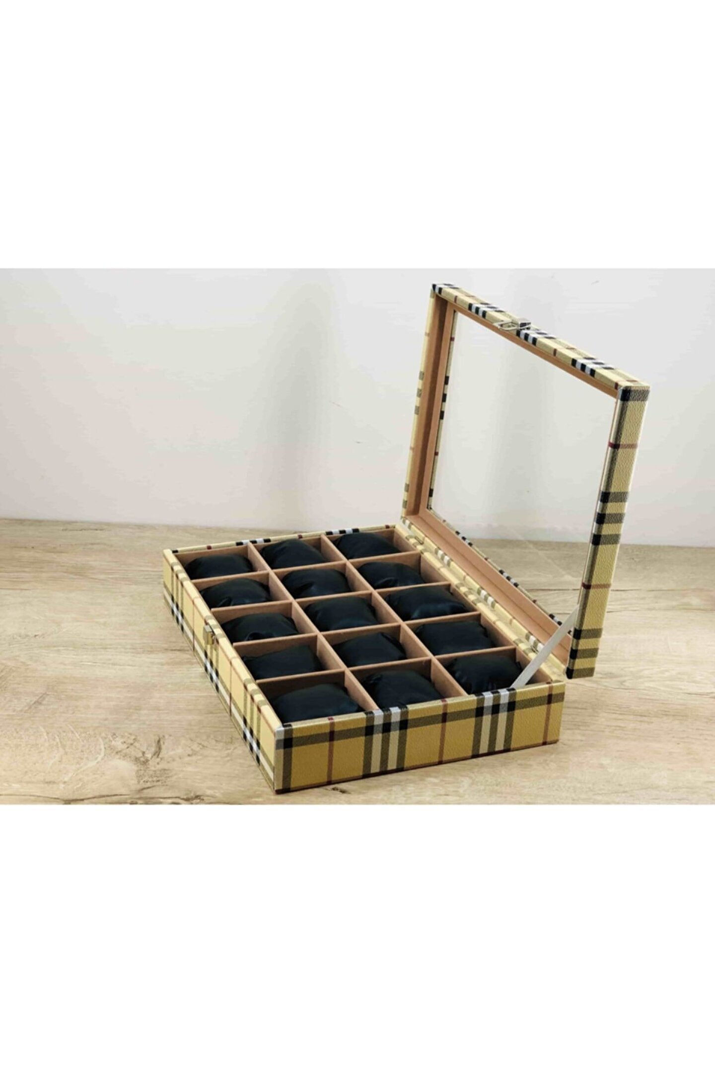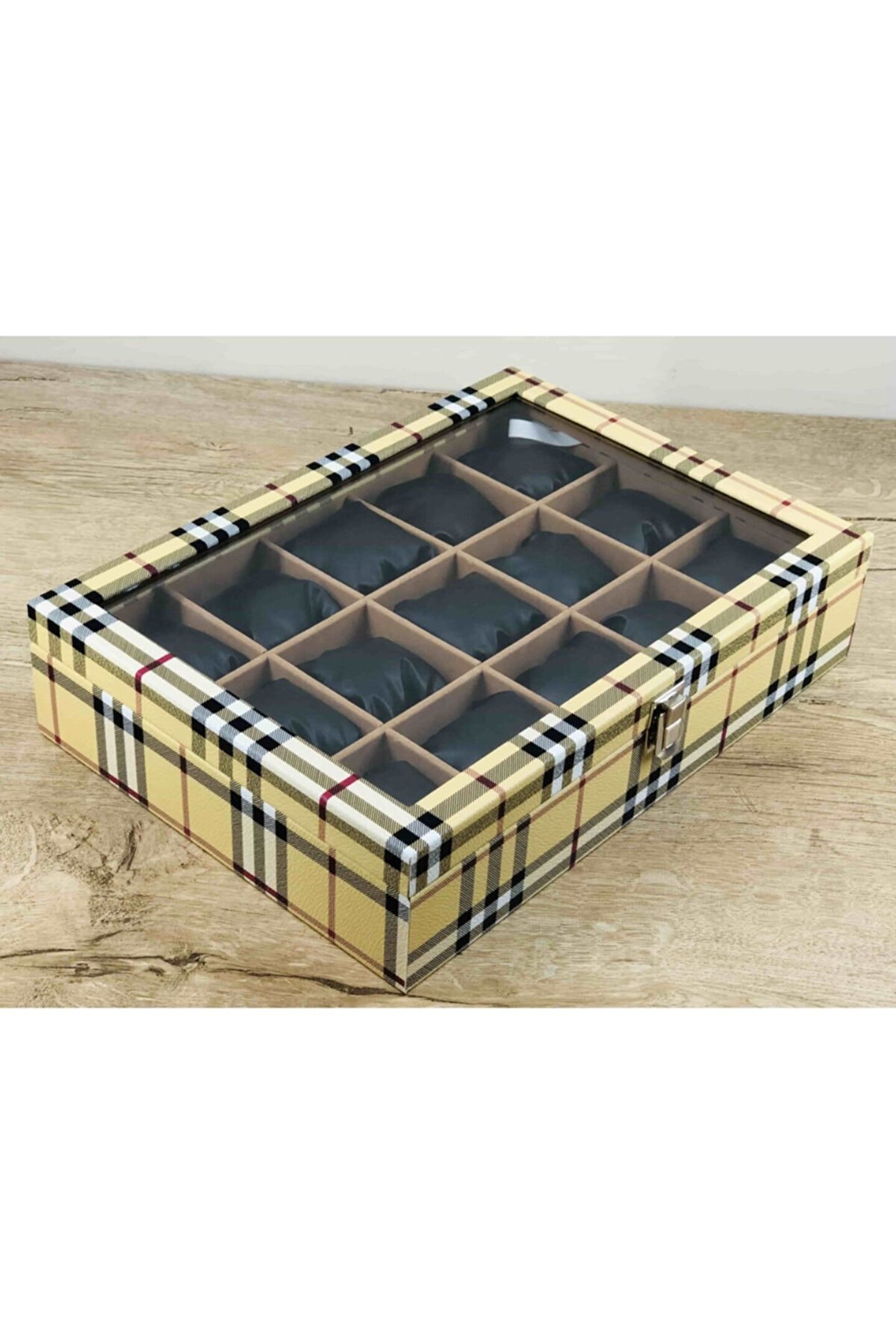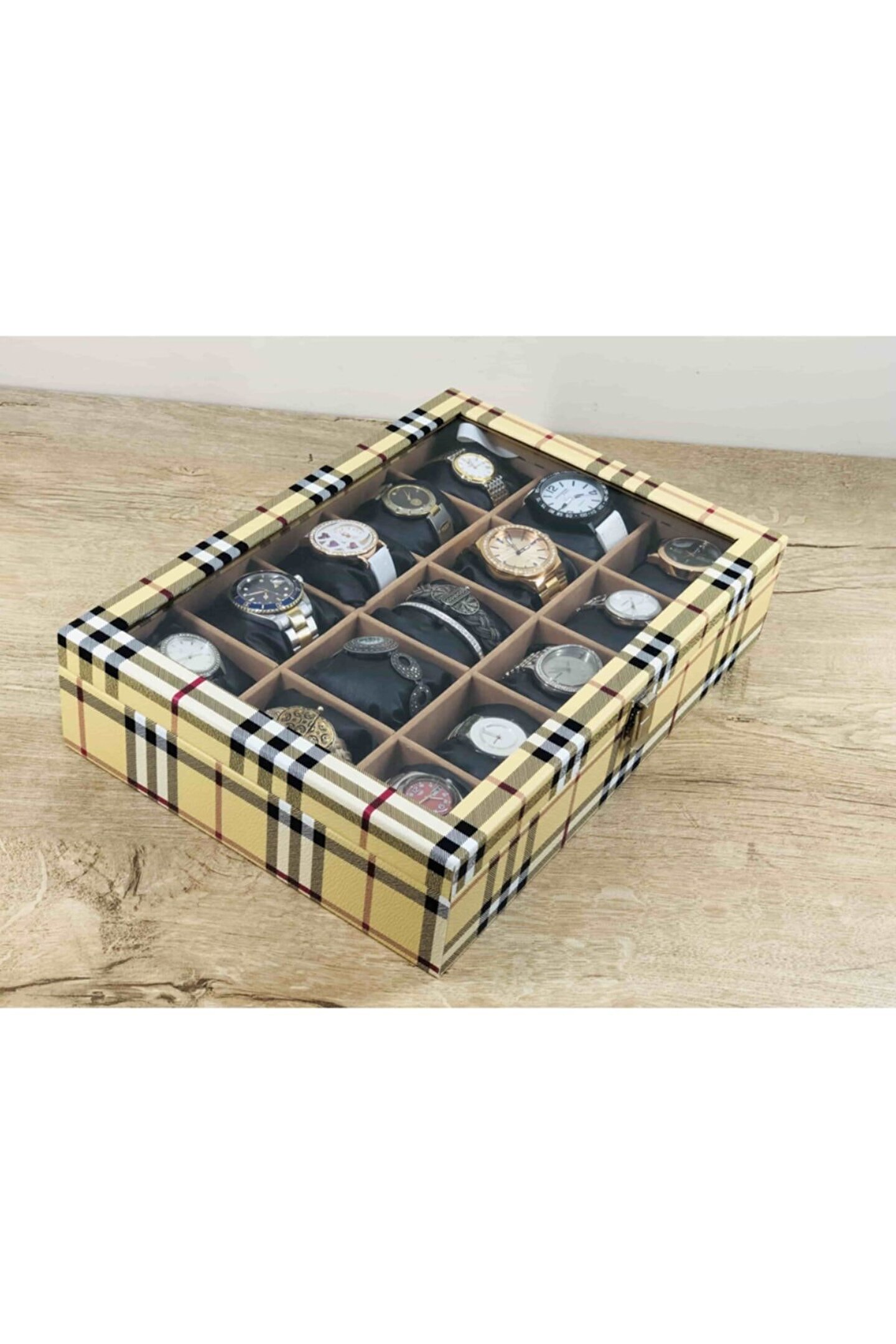 Kelepir Fırsatlar Kaliteyi Bilen Bayanlara Özel Iskoçya Sarısı Ekoseli Model Kaplamalı Kol Saati Kutusu