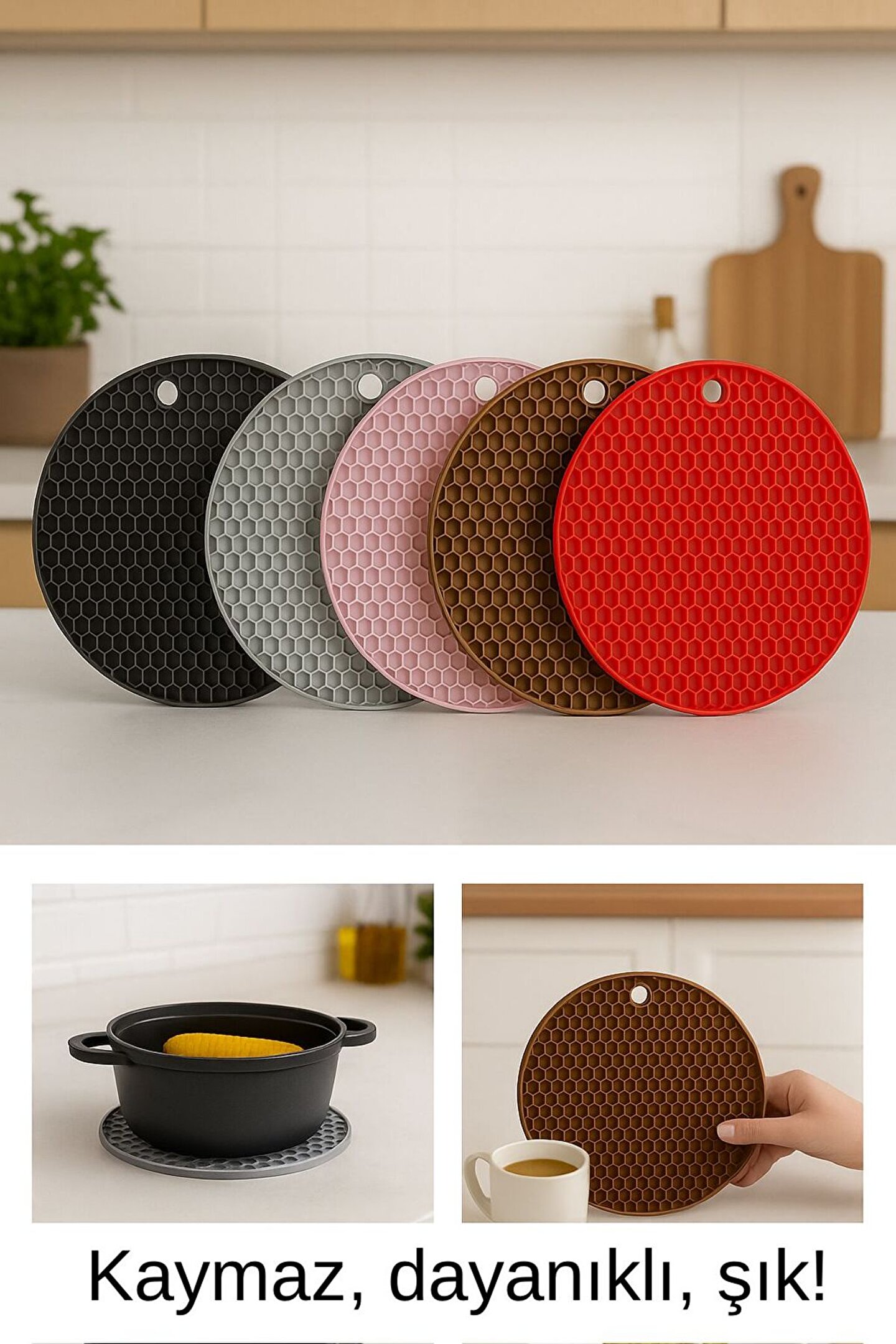Mutfakta pratiklik ve güvenlik sunan kaymaz silikon tencere altlığı, sıcak tencere, tava ve çaydanlıklar için ideal koruma sağlar.; Isıya dayanıklı silikon yapısı sayesinde yüzeylerin zarar görmesini önler.; Kaymaz yüzeyiyle güvenli kullanım sunar ve kolayca temizlenir.; Renkler stok durumuna göre gönderilmektedir.; ; ⸻