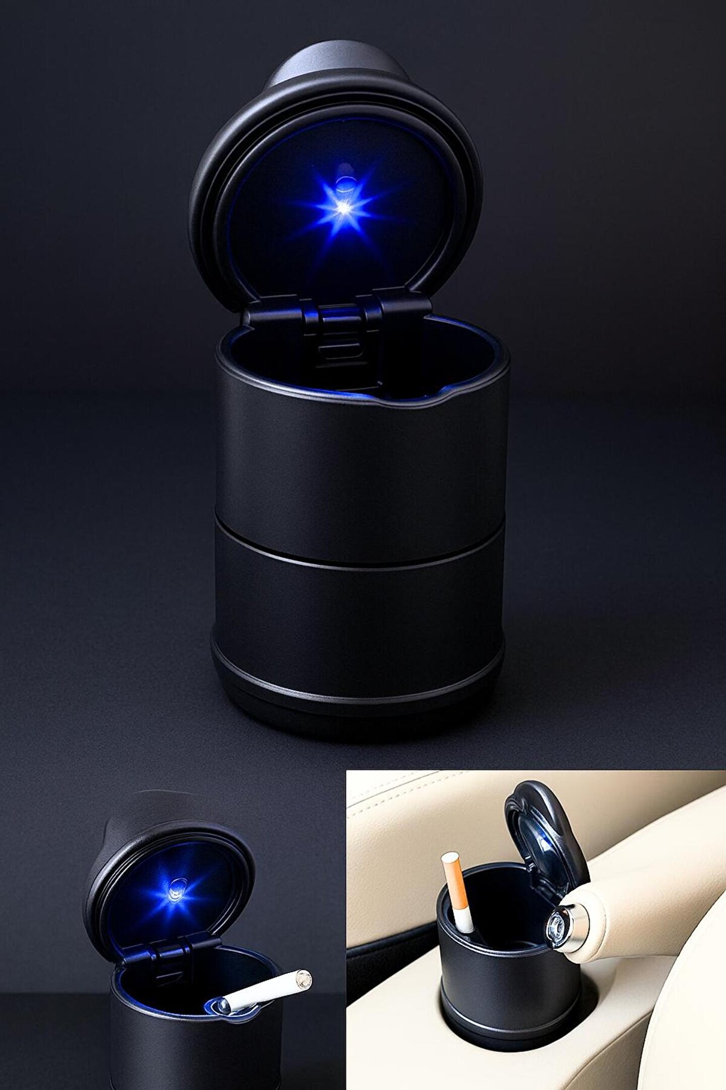 LED ışıklı bu oto küllük, araç içi kullanım için şık ve pratik bir çözümdür.; Açıldığında otomatik yanan mavi LED ışığı sayesinde gece sürüşlerinde rahat kullanım sağlar.; Kapaklı yapısı, sigara kokusunun yayılmasını engeller.; Bardaklığa tam uyum sağlayan boyutu sayesinde kol dayama ya da konsolda sabit durur.; İç kısmı temizlenebilir plastikten üretilmiştir ve sigaranın güvenli şekilde söndürülmesini sağlar.; ; Ürün Özellikleri: •Ürün Tipi: Araç içi küllük •Malzeme: Dayanıklı plastik •Işık: Mavi LED (kapak açıldığında otomatik yanar) •Renk: Mat siyah •Koku Önleyici: Kapaklı tasarım •Sigara söndürme yüzeyi: Plastik iç yapı •Uyumluluk: Bardaklık ve kol dayama alanlarıyla tam uyum •Temizlik: Kolayca çıkarılıp silinebilir iç hazne