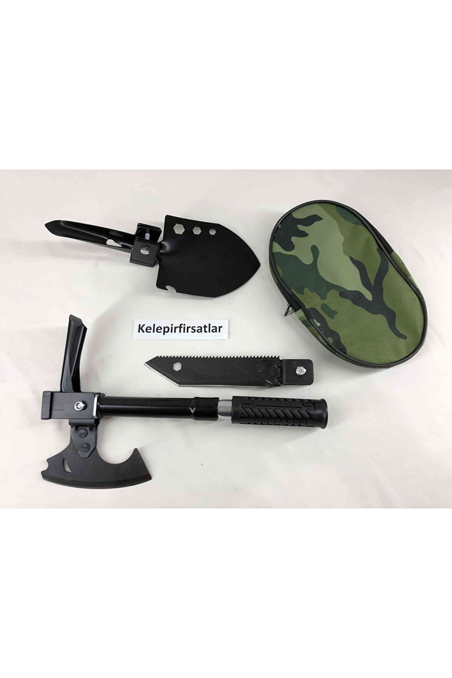 Kelepir Fırsatlar Süper Pratik Sökülüp Katlanan Minik Askeri Çelik Balta Çekiç Çapa Bıçak Testere Seti Haki Çantalı