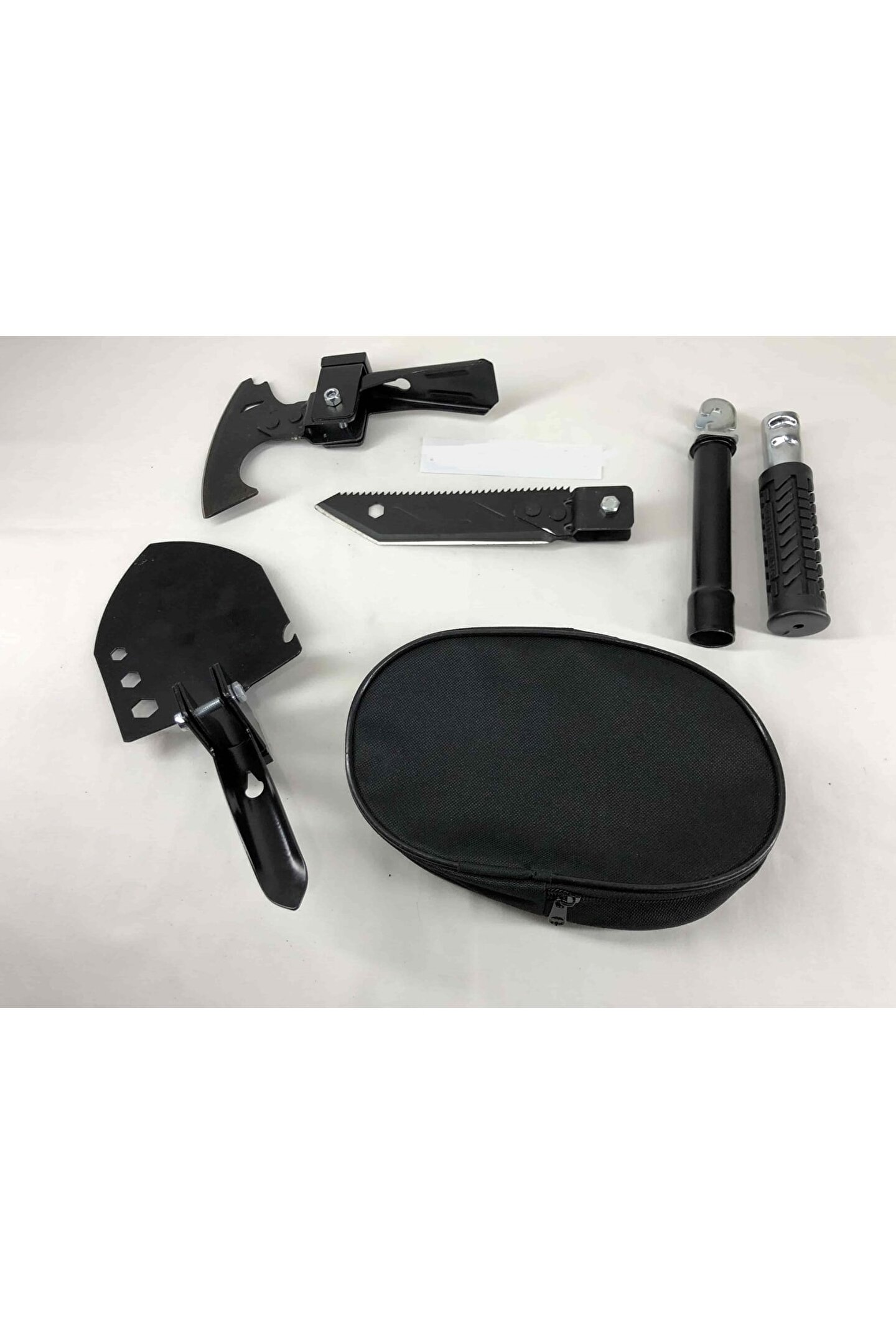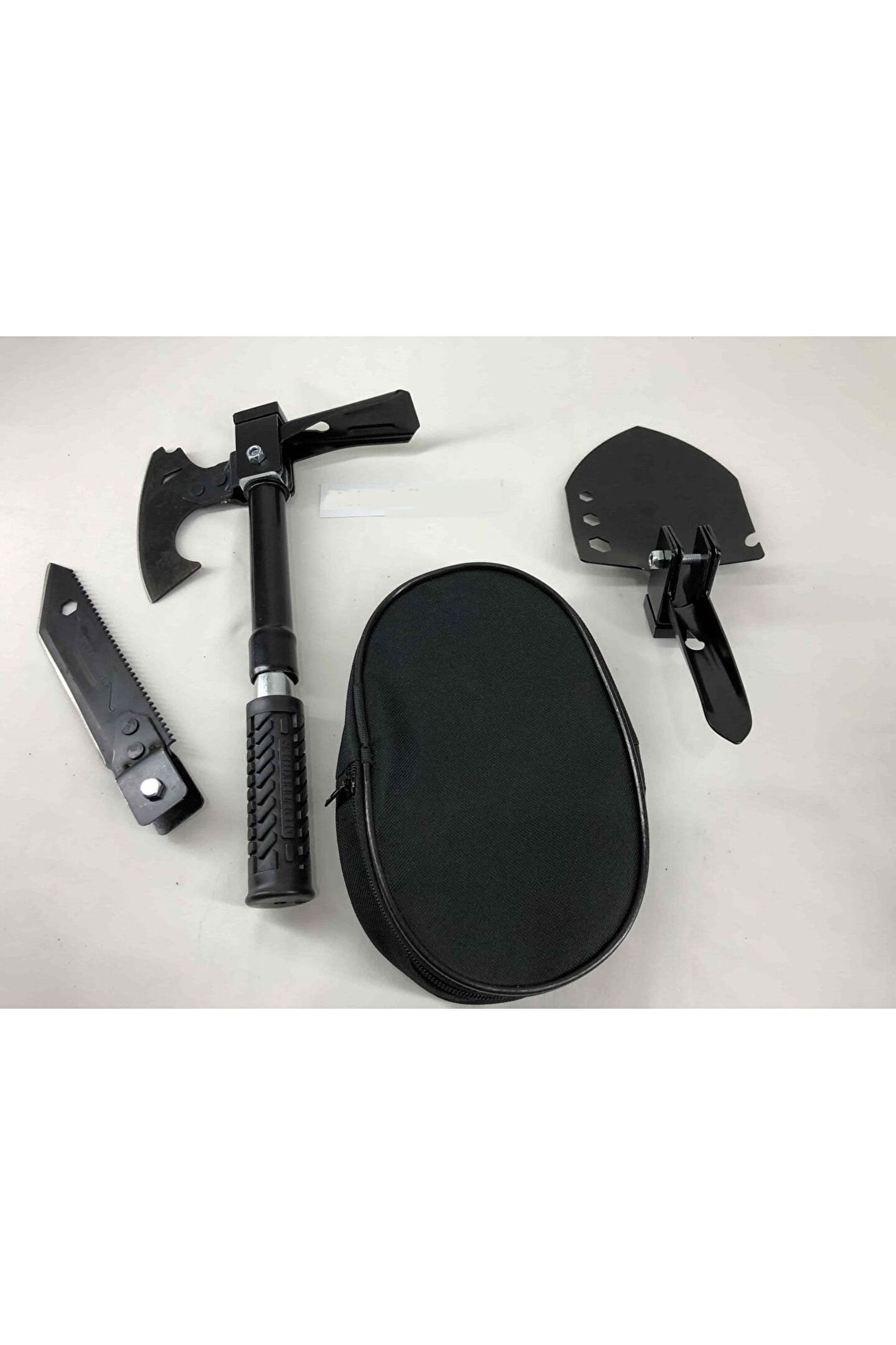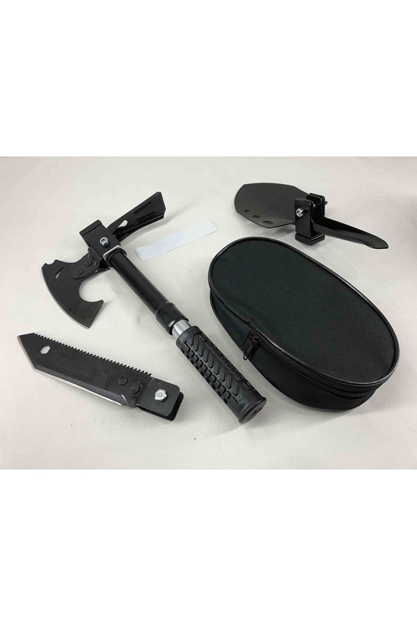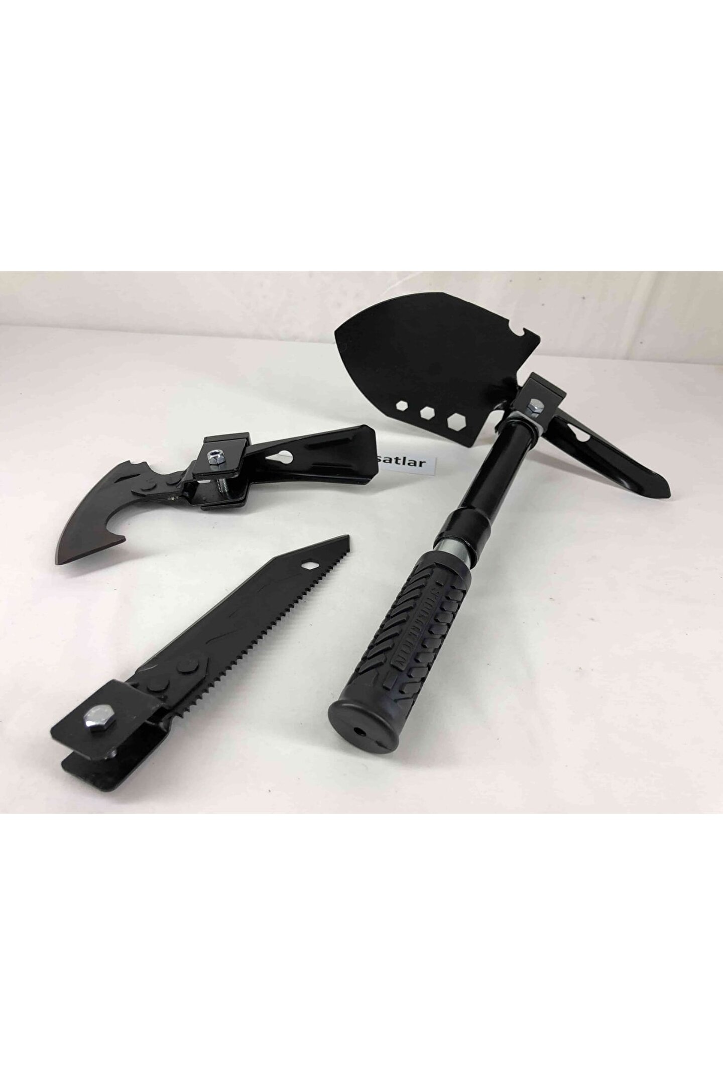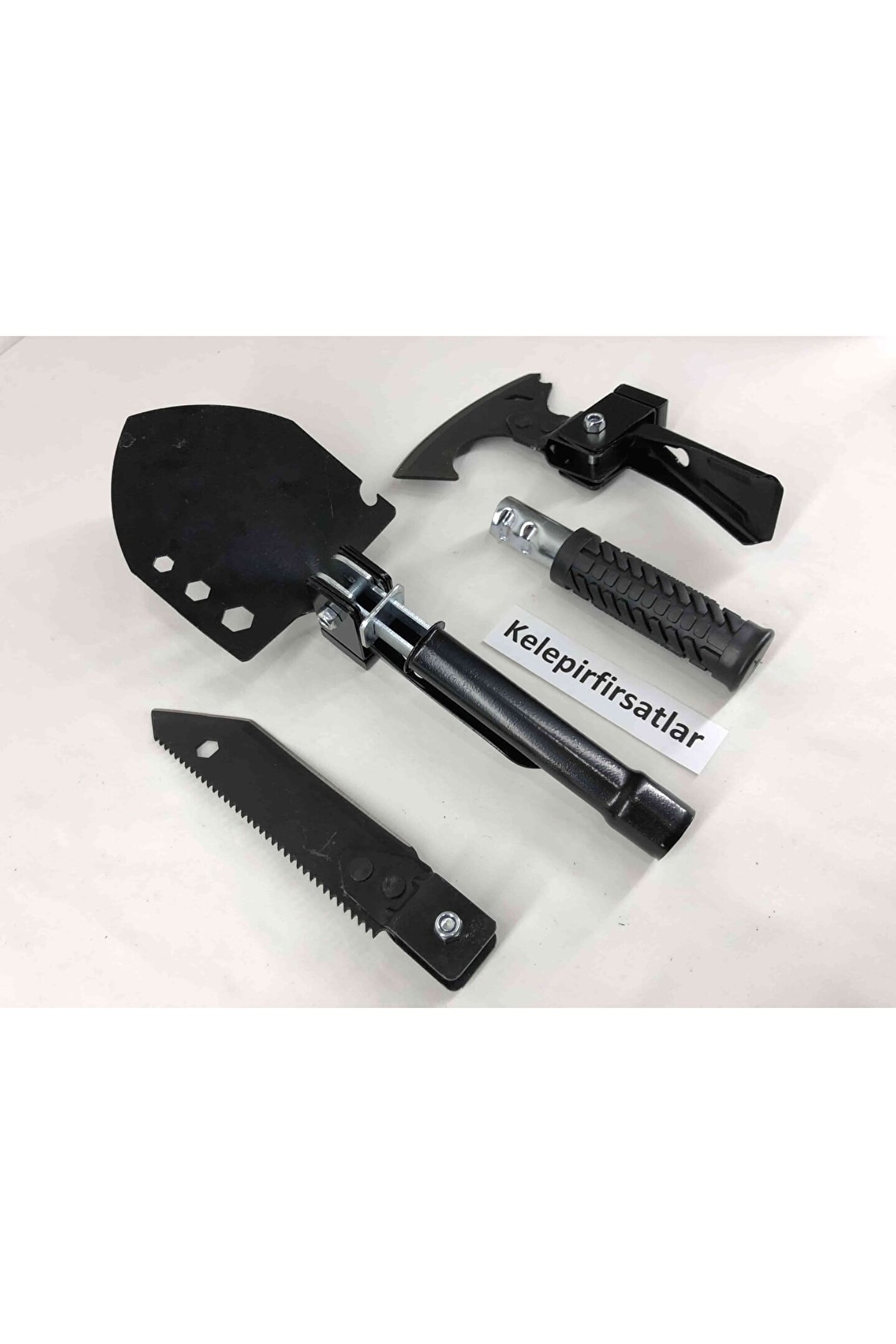 Balta, çekiç, kazma, çapa, testere, 8,10,13 yıldız anahtar, şişe açacağı, çivi sökücü,keser, bıçak mevcuttur. ; bir kaç hamlede pratik ve kolayca açılıp kapanabilen katlanabilir portatif kürek seti. ; Sizi dış mekan aktivitelerinizde büyük ve ağır kürekleri taşıma zahmetinden kurtarır. ; bıçak çok keskin ve sivri uçludur ısıl işlem görmüştür, kararma, oksitlenme ve paslanma yapmaz. ; kolayca açılır ve kapanır, kilit sabitleme mekanizması bulunmaktadır kauçuk yuvarlak sap güçlü kullanım sunar her türlü dış etkenlere karşı (güneş ışığı, tuzlu su, kar, buz, sıcak soğuk) dayanıklıdır. ; çok fonksiyonel mini kürek fidan dikmek, çapa yapmak, kar küremek, 8,10,13 yıldız anahtar ve aynı zamanda şişe açacağı olarak kullanılabilir. ; portatif kürek setini yolculuklarda mutlaka arabanızın bagajında, avadanlığınızda veya alet çantanızda muhakkak bulundurun. ; evinizdeki pratik yardımcınızdan kürek çok yer kaplıyorsa, katlanabilir kürek tam aradığınız üründür. ; pratik, şık ve kaliteli tasarlanmış özel taşıma çantasının içerisinde kolayla dilediğiniz her yere götürebilir taşıyabilirsiniz. ; acil durumlarda ve ihtiyaç duyduğunuz her yerde en büyük yardımcınız olucak. ; katlanabilen minik yapısı sayesinde işiniz bittiğinde kolaylıkla katlayıp taşıyabilirsiniz. ; mini metal küreği ile bahçe bağ tarla bakımını daha hızlı ve pratik bir şekilde gerçekleştirebilirsiniz. ; Hafif ve küçük yapıya sahiptir, yer kaplamaz, pratik ve kolay taşınır. ; ürün ölçüleri : kurulu kürek uzunluğu : 41 cm kurulu çekiç uzunluğu : 27 cm kurulu kazma uzunluğu : 30 cm kurulu bıçak uzunluğu : 44 cm kapalı toplam uzunluk : 20 cm Kurulu balta uzunluğu : 41 cm Bıçak uzunluğu : 16 cm Testere uzunluğu : 15 cm kürek uzunluğu : 13 cm Çekiç uzunluğu : 3 cm Kazma uzunluğu : 10 cm Balta uzunluğu : 10 cm Tutma sapı çapı : 3 cm Tutma sapı uzunluğu : 44 cm Tutma sapı kundağı : 10 cm Toplam ağırlık : 770 gram Kullanılan materyaller : metal : Paslanmaz çelik kaplama : Elektrostatik toz kaplama renk : Siyah el kundağı : Kauçuk Civatalar : Paslanmaz krom Çanta : Hafif branda Paket içeriği: Bir adet katlanır kazma kürek balta seti + bir adet özel yeşil kamuflaj taşıma çantası Çanta : Hafif branda Paket içeriği: Bir adet katlanır kazma kürek balta seti + bir adet özel siyah taşıma çantası;