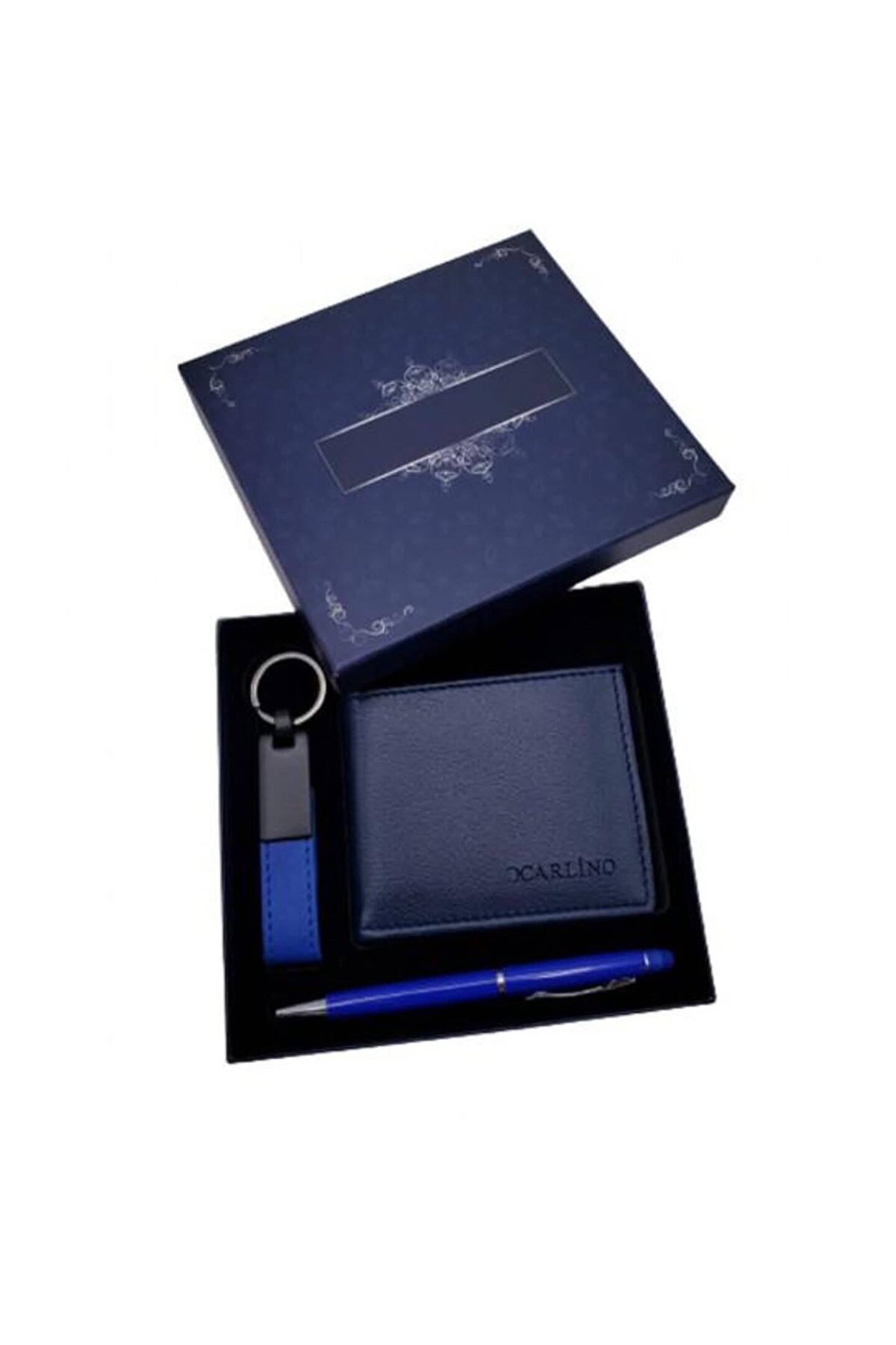 Mavi Kalem Cüzdan Deri Anahtarlık Dekoratif Hediyelik