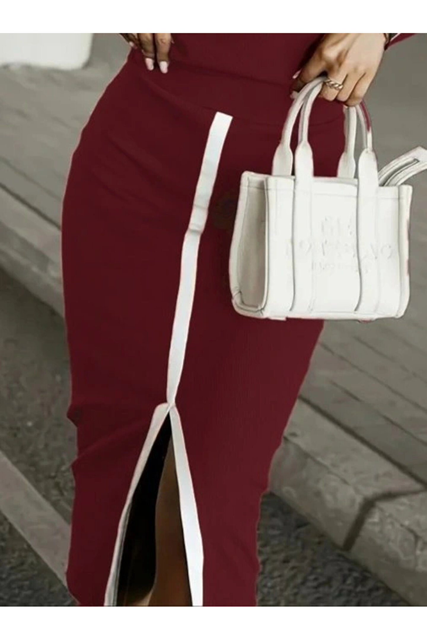 KentselBazaar Kadın Uzun Kollu Bisiklet Yaka Kaşkorse Bluz Ve Yırtmaçlı Etek Ikili Takım