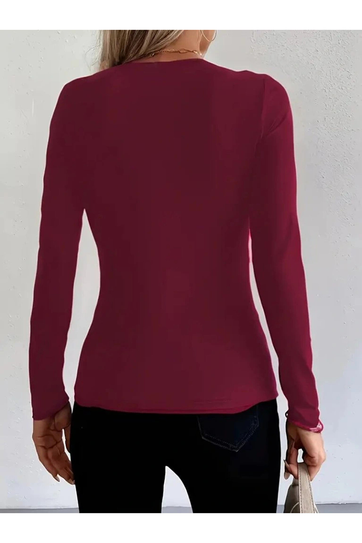 KentselBazaar Kadın Uzun Kollu Yakadan Halka Detaylı Viskon Bluz