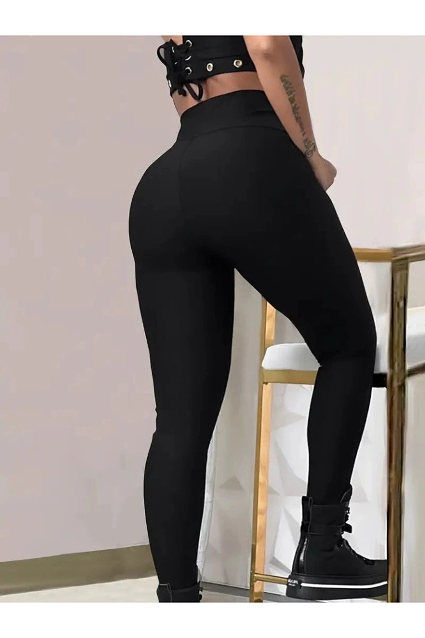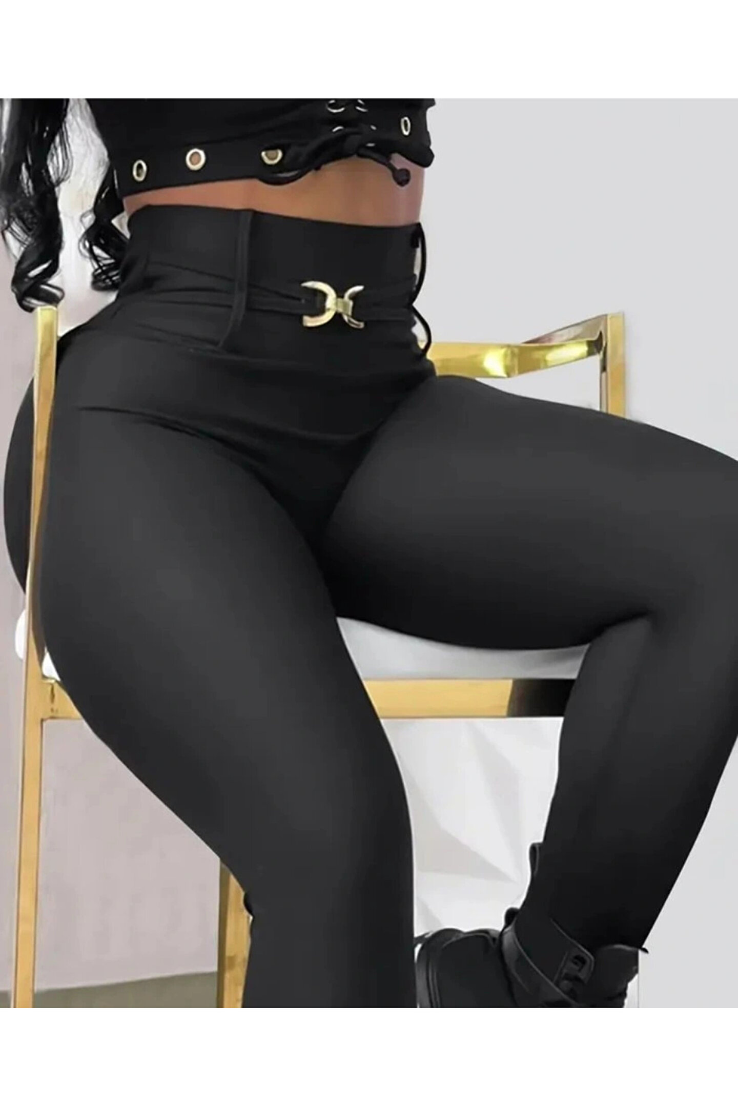 Kadın Yüksek Bel Belden Toka Detaylı Dalgıç Tayt