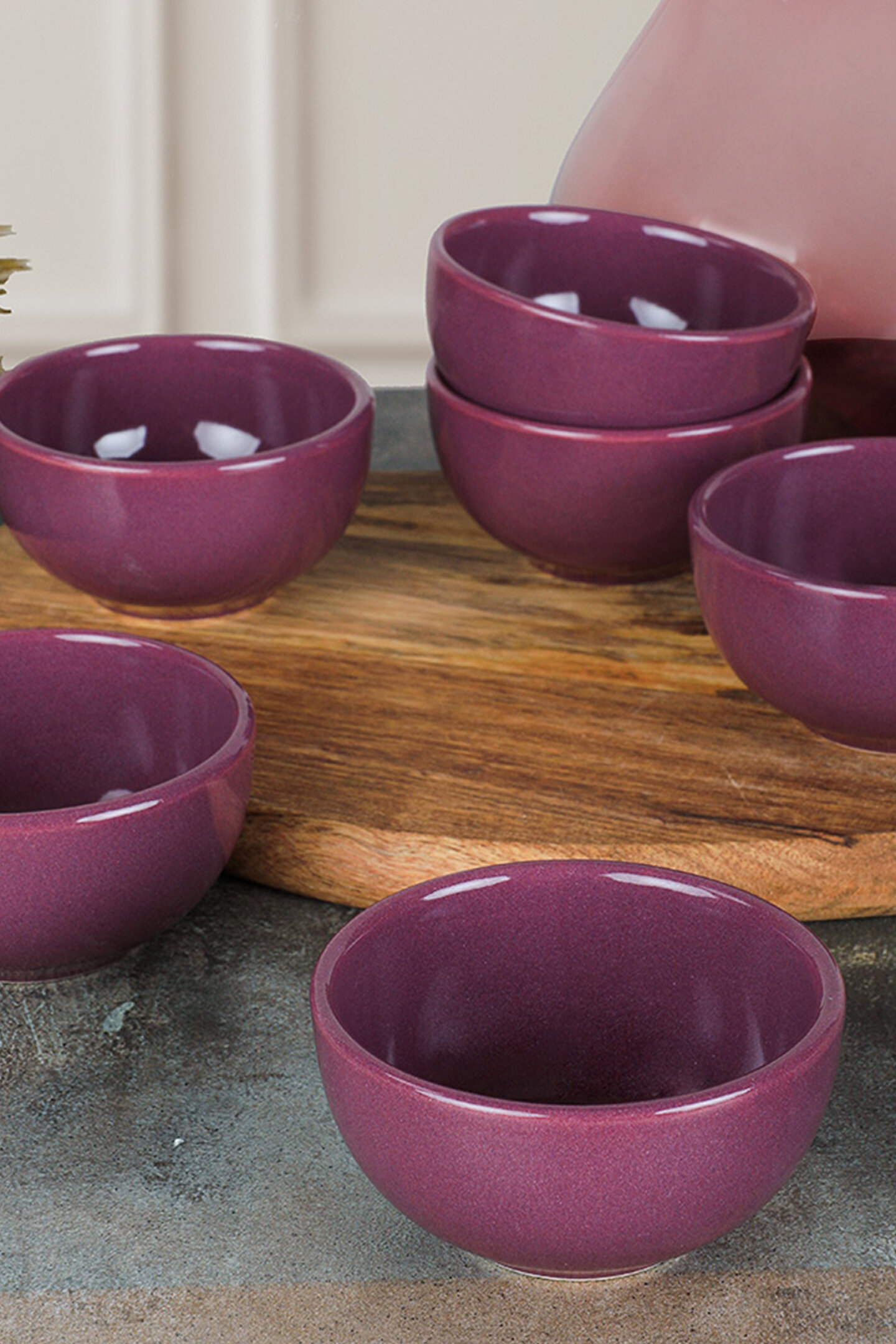 Günlük kullanım için ideal, reçellik kaseler, kahvaltıda taze meyve ve yoğurt sunumundan, çerez ve atıştırmalıklarınıza şıklık katmaya kadar her anınıza eşlik eder; Stoneware malzemesi sayesinde dayanıklılık ve uzun ömürlü kullanım sunar; sık kullanımlarda bile formunu korur ve estetik görünümünden ödün vermez; Mor renk seçeneğiyle mutfak dekorasyonunuza renkli bir dokunuş ekler ve sofralarınıza modern bir hava katar; 8 cm çapındaki boyutu ile hem küçük hem de büyük porsiyonlar için uygundur; çeşitli yiyecekleri rahatça servis etmenize olanak tanır; 6 adet set halinde sunulan bu kaseler, birden fazla yemeğinizi aynı anda hazırlamanız için pratik bir çözüm sunar;