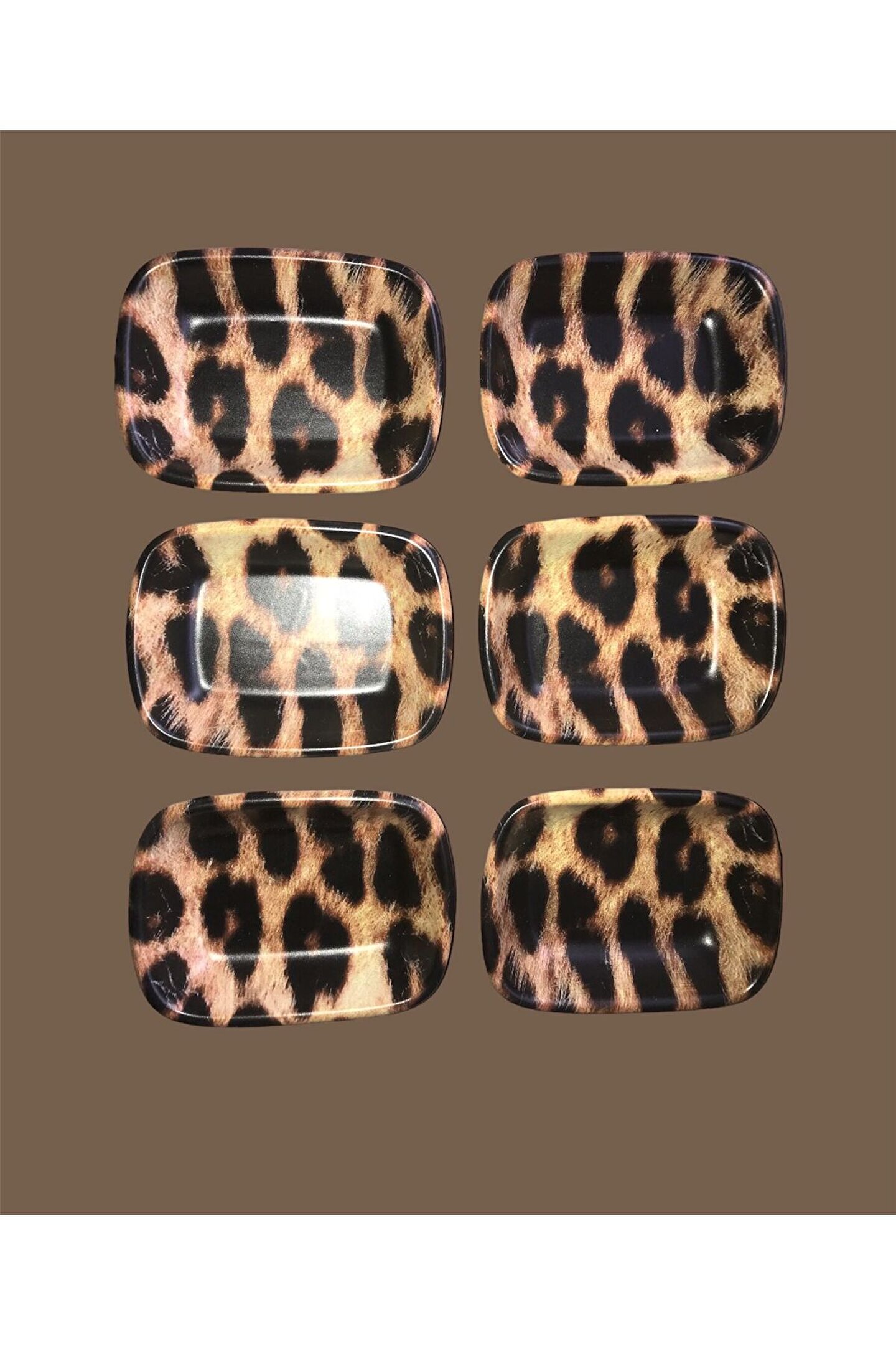 6 ADET LEOPAR DESENLİ DİKDÖRTGEN KAYIK TABAK 13 CM