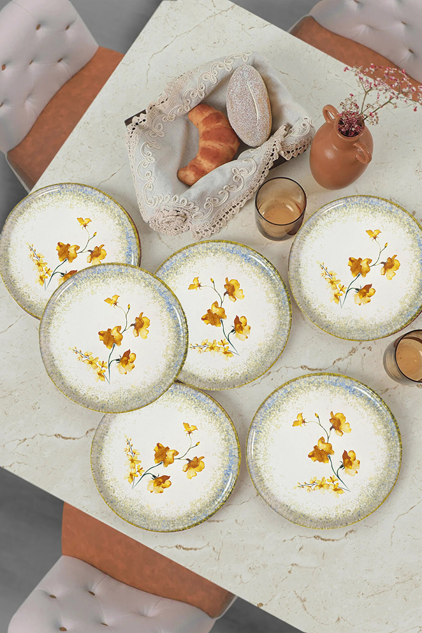 - 6 kişilik geniş kapasiteye sahip, herkesin keyifle kullanabileceği Hercai kahvaltı takımı.; - Mikrodalgada güvenle kullanılabilen dayanıklı stoneware malzeme ile uzun ömürlü kullanım sunar.; - Şık ve modern bir görünüm kazandıran çiçek desenleriyle sofralarınıza estetik bir dokunuş ekler.; - Canlı sarı rengiyle dikkat çeken bu takım, mutfak dekorasyonunuza renk katmak için idealdir.; - Toplamda 14 parça