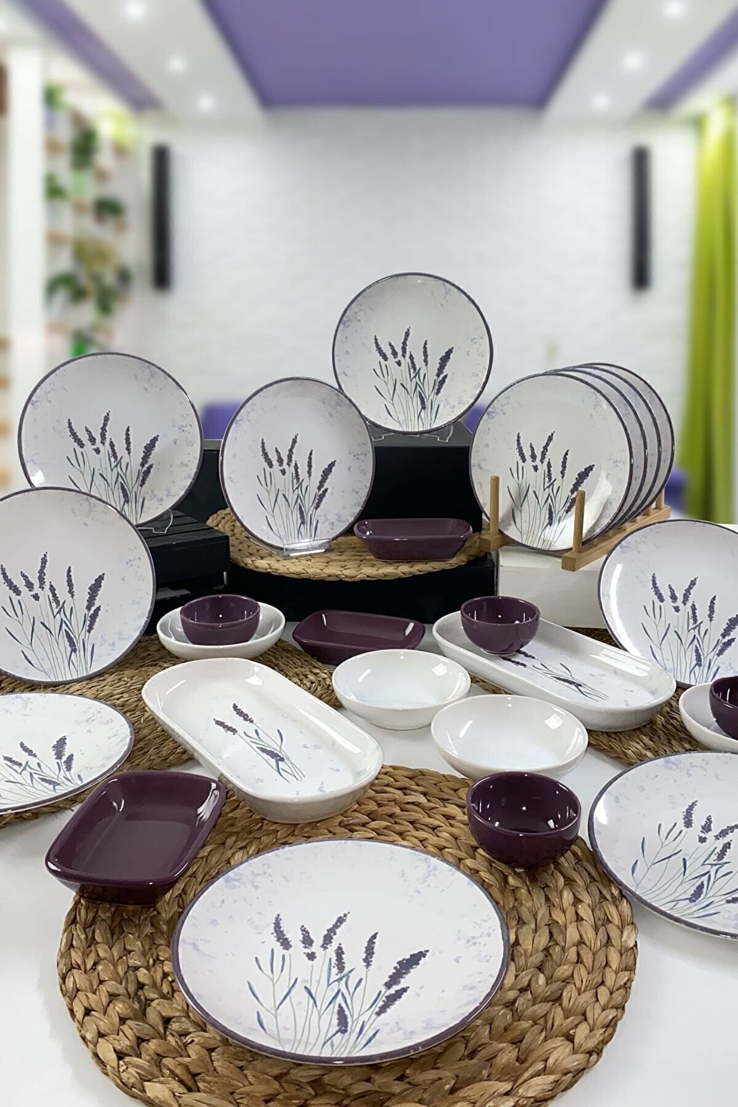 12 adet 20cm desenli kahvaltı tabağı ; 4 adet 13cm beyaz yuvarlak kahvaltılık ; 4 adet 8cm mor yuvarlak kahvaltılık ; 3 adet 13cm mor dikdörtgen kahvaltılık ; 2 adet 26cm desenli kayık tabak ; Ürün kullanımı: Renkleri ve baskısı solmaz. Kolay temizlenir, mikrop barındırmaz. ; Bulaşık makinesi normal ayarında yıkanabilir. ; Tamamen sağlıklı ve ekolojik malzeme yapısına sahiptir. ; Türkiye’de üretilmiştir. ; Almış olduğunuz bu üründe kırık ürün değişim garantisi bulunmaktadır. Koli içerisinde bilgilendirme broşürü yer almaktadır. ; Taşıma esnasında kırılma riskine karşı güvenli paketleme yapılarak gönderimi sağlanmaktadır. ; Koli Ölçüleri : 55x32x18cm ; Koli Ağırlığı : 8KG;