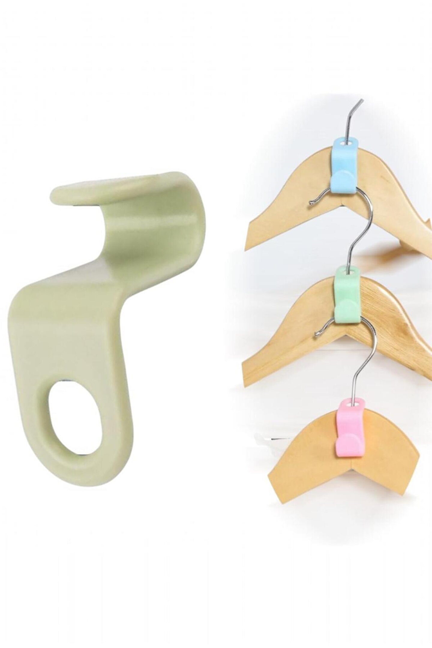 Gardrop Düzeninde Kolaylık:Askı konektörleri, gardırobunuzdaki kıyafetlerin düzenli bir şekilde yerleştirilmesini sağlar. Kıyafetleri düzenlemekle kalmaz, aynı zamanda kemer, çanta, kolye ve diğer aksesuarları asmak için de kullanılabilirler, böylece ihtiyacınız olan kıyafetleri hızlıca bulabilirsiniz.