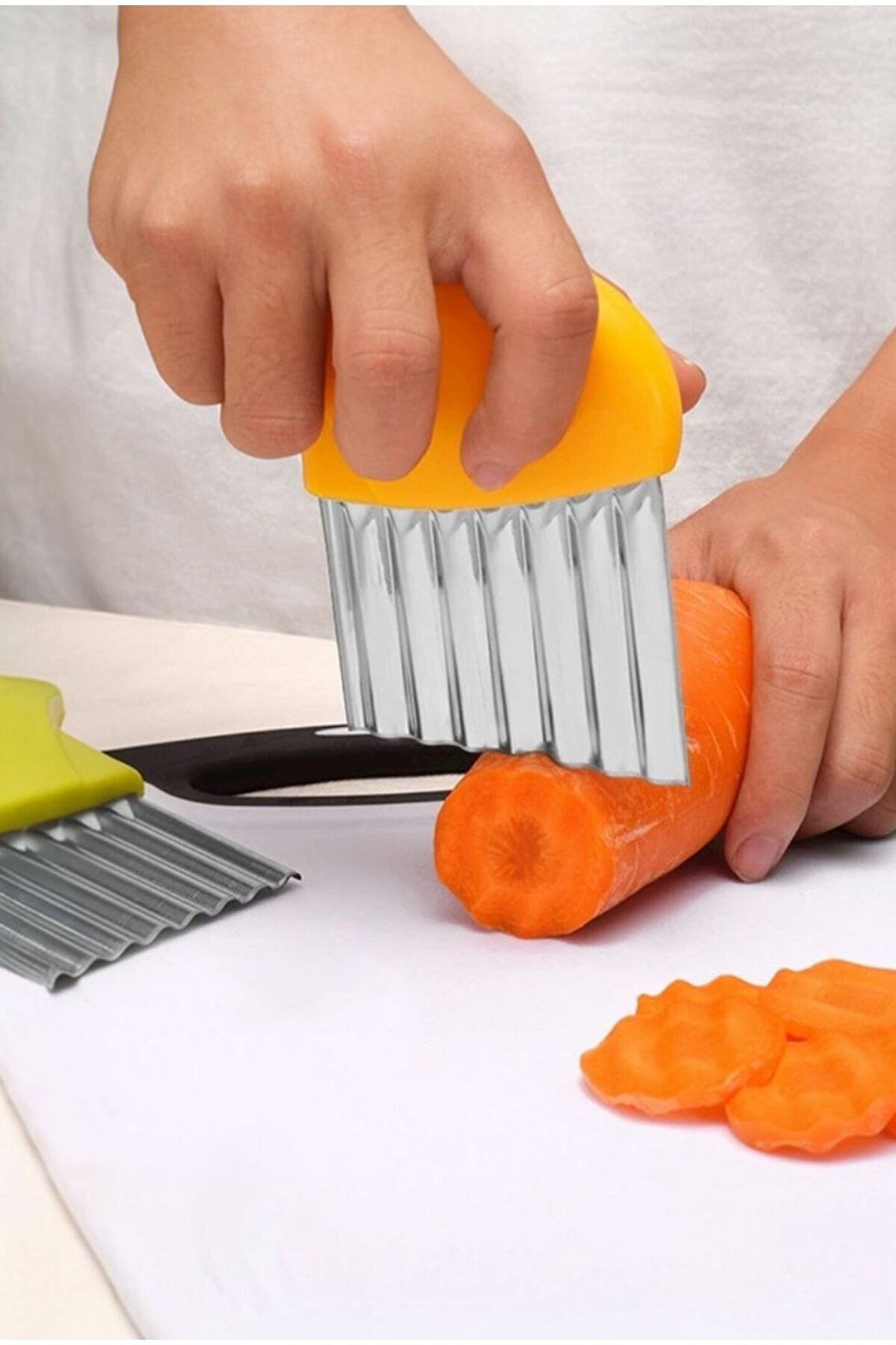 Tanım : Sebze Meyve Dilimleyici ; Çeşitli meyve ve sebzelerde süslü kenarlar ve waffle kesimleri yapmak için harikadır.; Ayrıca peynir ve tereyağı için de kullanılabilir.; ; Kullanımı kolay ; Malzeme: 430 paslanmaz çelik ve ABS plastikten üretilmiştir.; ; Yuvarlak sap kavramayı daha rahat hale getirir.; ; Kullanımdan sonra kolayca yıkanabilir.; ; Sağlıklıdır.; Çevre Dostu uzun süre dayanacak şekilde üretilmiştir ; Boyut : 11.4 * 2.54 Cm ; Ağırlık : 47.03 Gr.; ; STOK DURUMUNA GÖRE RENK GÖNDERİLİR
