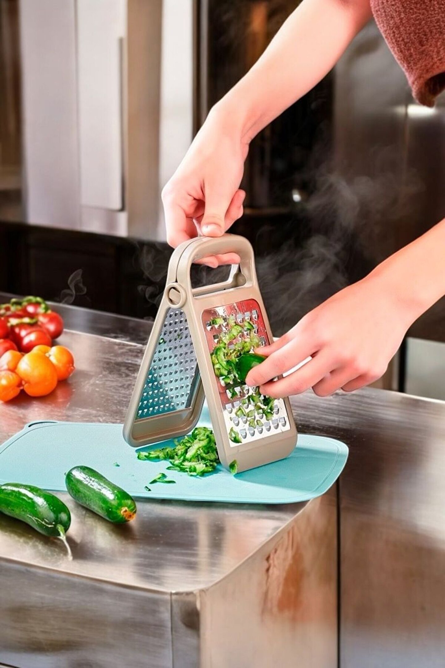 Kırmızı Beyaz Home Katlanabilir Ayrılabilir Çelik Rende – Ergonomik Tasarım, Çift Taraflı Bıçak-KAHVE