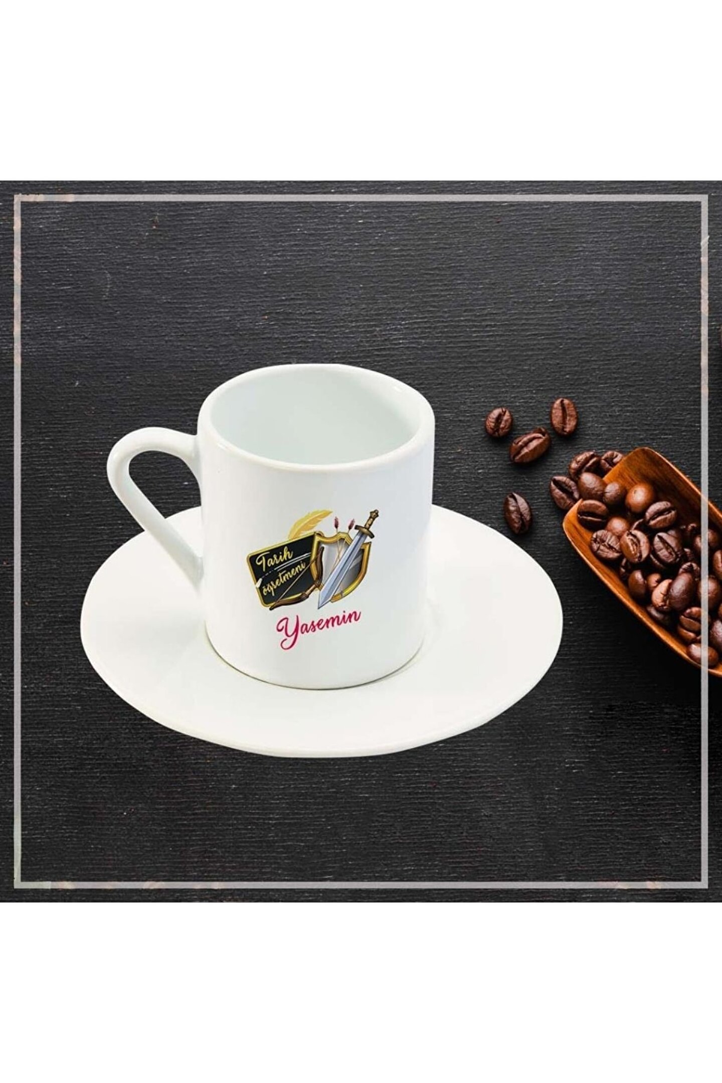 Tek parça olarak sunulan bu özel tasarım, tarih öğretmeni arkadaşınıza veya sevdiklerinize kişiselleştirilmiş bir hediye olarak düşünceli bir dokunuş sağlar; Yüksek kaliteli seramik malzemeden üretilmiş olup, uzun ömürlü kullanım ve dayanıklılık sunar; Türk kahvesi kültürünü yansıtan bu fincan, tarih öğretmeni arkadaşınızın kahve ritüellerini daha da özel kılacak zarif bir aksesuardır;