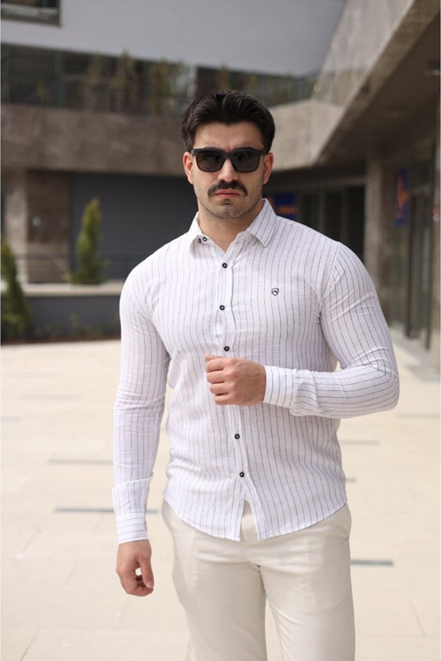 Kıvanç Moda eyesof Erkek çizgi Desenli Gömlek