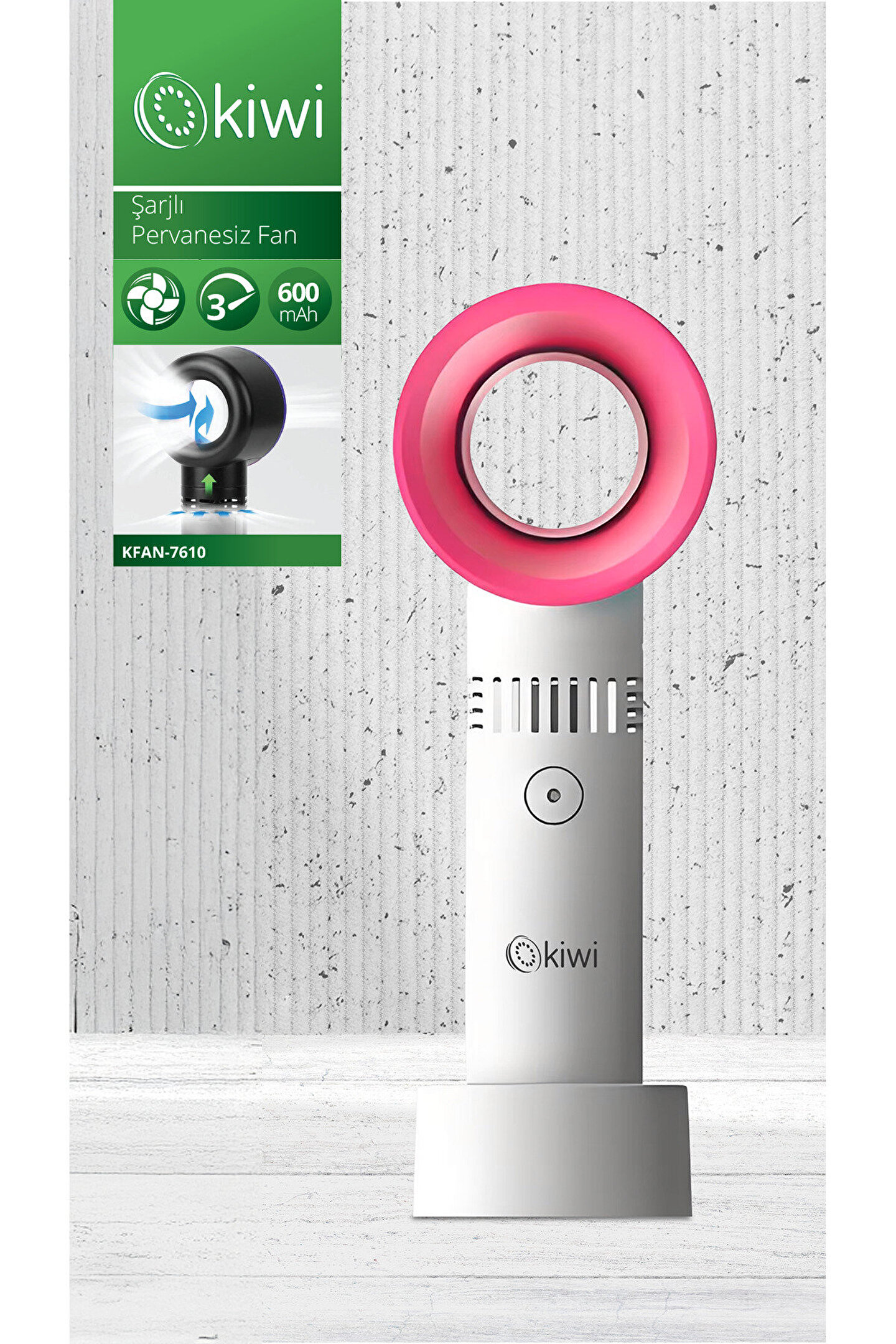 Kfan-7610 Şarjlı Pervanesiz Taşınabilir El Fanı