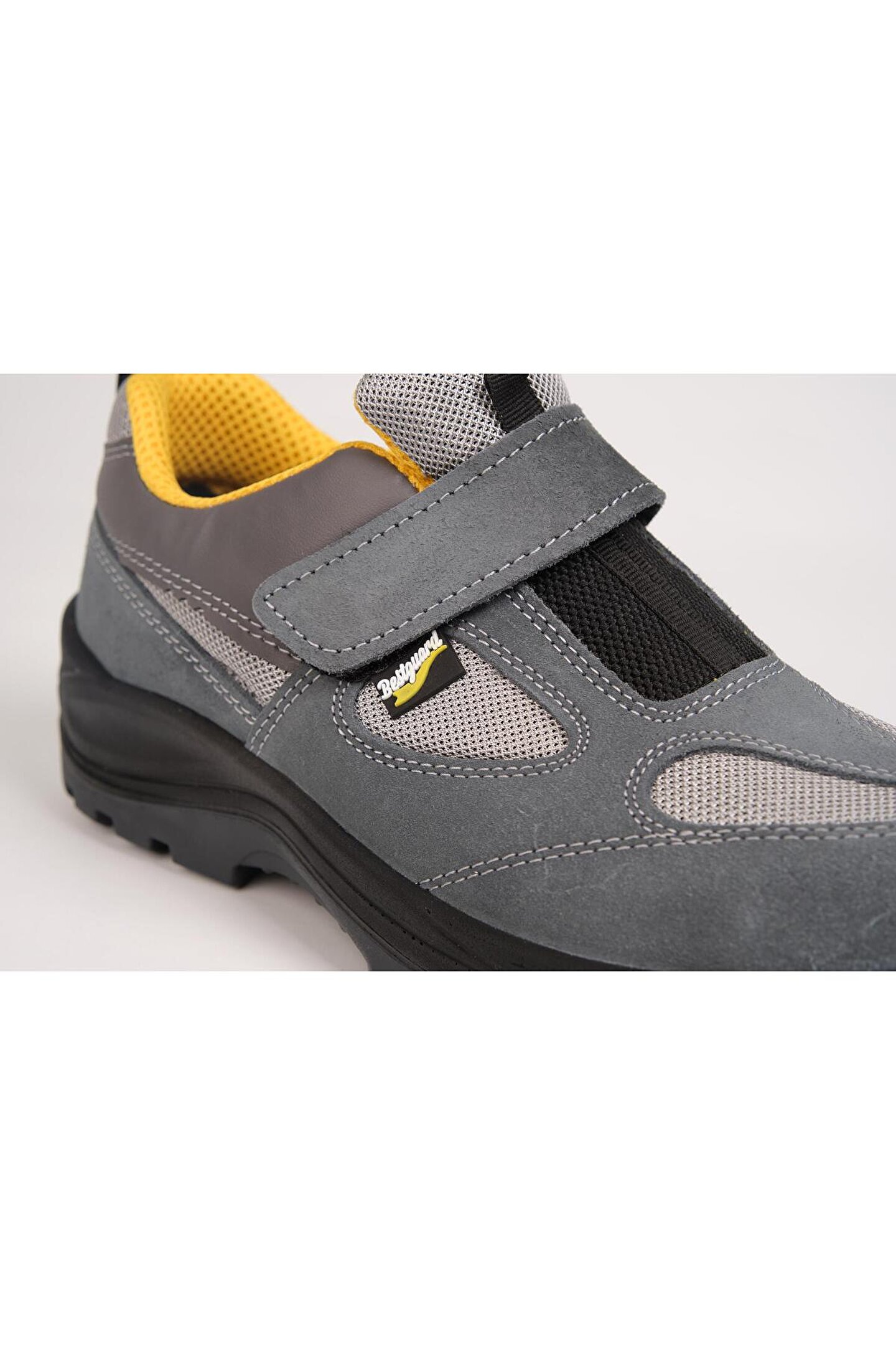 Bestguard Süyet Cırtlı S1P Çelik Burunlu İş Ayakkabısı - Obi Deri: 1.8-2.0 mm nefes alabilen süyet deri Tekstil malzeme: Örgü sistemiyle özel üretilmiş nefes alabilen tekstil kumaş; ter emici rahat nefes alabilen koku önleyici astar Mostra: Çıkartılabilir, yıkanabilir şok emici mostra Taban: PU-PU çift densite enjeksiyon teknolojisi, Şok emici topuk, aşınmaya dayanıklı kaymaya dirençli, antistatik taban Burun koruma: 200 J darbe dayanımlı çelik bombe Z1.0 Kategori: S1, S1 P Darbe Dayanıklılığı: 200 J;