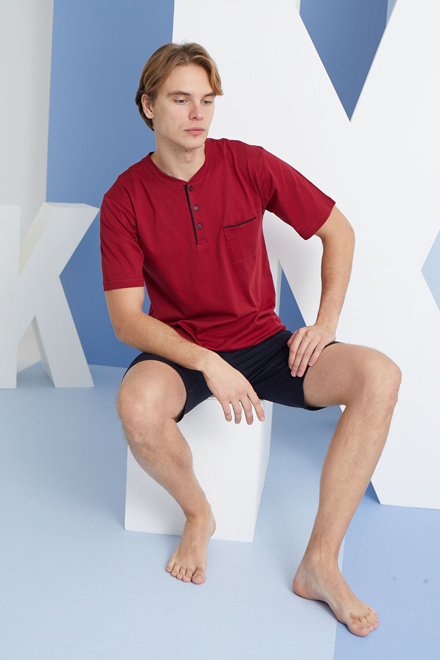KLY Erkek Midi Yaka Şortlu Takım Modern Tasarım