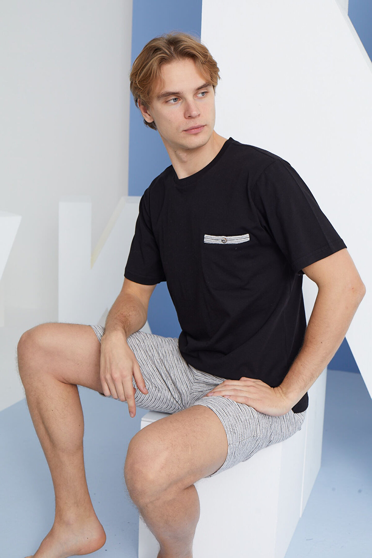 Tüm yaş gruplarına uygun tasarımıyla herkesin rahatlıkla kullanabileceği bir pijama takımıdır.; Normal bel kesimi ile gün boyu rahat hareket etme özgürlüğü sağlar.; İpliği boyalı kumaşı, renklerin canlılığını uzun süre korurken dayanıklılığı artırır.; Homewear (ev giysisi) olarak tasarlanmıştır; evde geçirilen zamanları daha keyifli hale getirir.; Örme kumaşı esnek yapısıyla vücuda mükemmel uyum sağlar ve hareket serbestliği tanır.; Süprem dokumasıyla yumuşak dokunuş hissi verirken dayanıklılığı arttırır.; Kısa kol tasarımı yaz aylarında serinlik sağlarken kış aylarında da sıcak tutar.; Açık paça kesimiyle bacak hareketlerini kısıtlamaz, özgürce hareket etmenize olanak tanır.; Kısa paça boyu hem rahatlıkla uzanabilmenizi hem de gün içinde rahatça hareket edebilmenizi sağlar.; Regular kalıp ile standart bedenler arasında rahatlıkla tercih edilebilir; vücut hatlarını saran ama sıkmayan yapıdadır.;