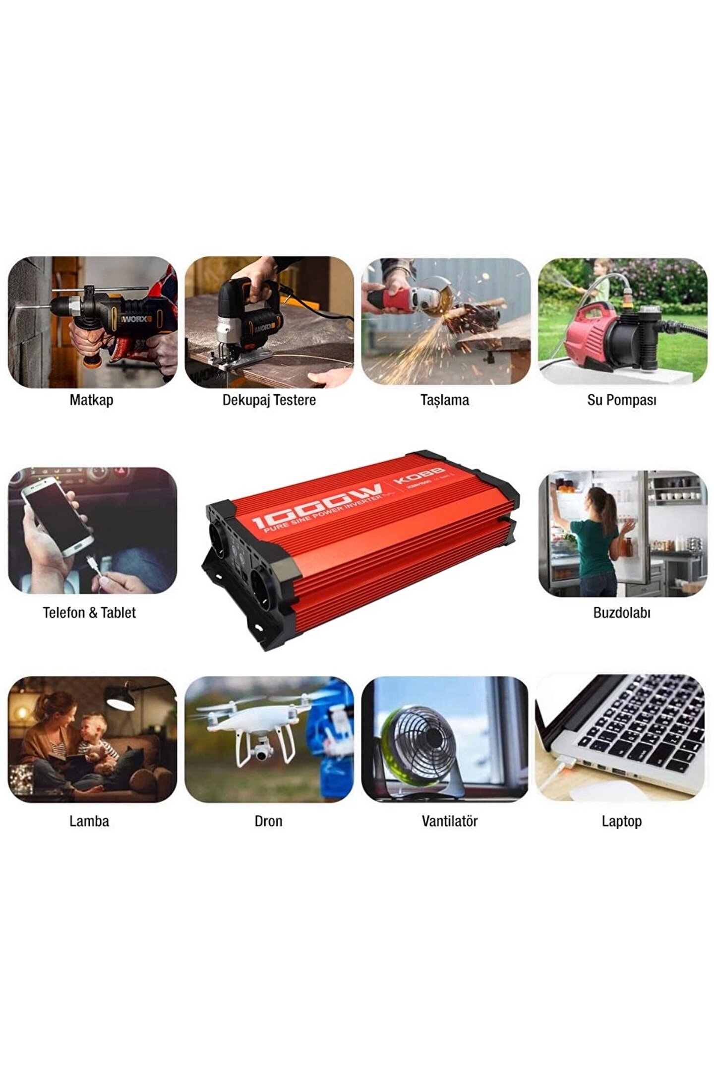 Bu ürün hakkında 12Volt akünüze direk bağlayarak 12Volt DC Akımı 220Volt elektrik enerjisine dönüştürür bu sayede 220Volt1000Watt elektrik enerjisi ile TV mini bar aydınlatma bilgisayar cep telefonu tablet ve diğer tüm elektronik cihazlarınızı şarj etmenizi ve kullanmanızı sağlar Üstün Tam Sinüs invertör teknolojisi ile şebeke elektrik değerlerine en yakın elektrik enerjisini üretir Üstün Tam Sinüs invertör teknolojisi ile şebeke elektrik değerlerine en yakın elektriği stabil şekilde ileterek hassas elektrikli veya elektronik ürünlerinizin yüksek performansta verimli çalışmasını sağlar enerji kayıplarını en aza indirir